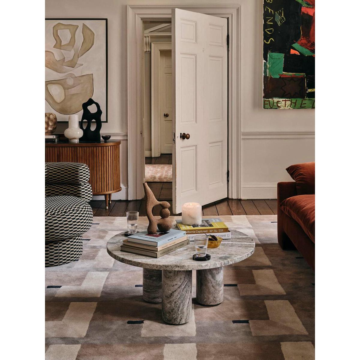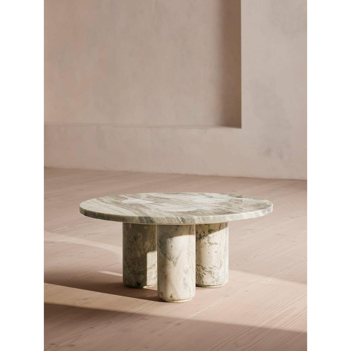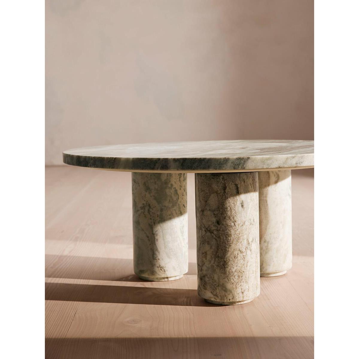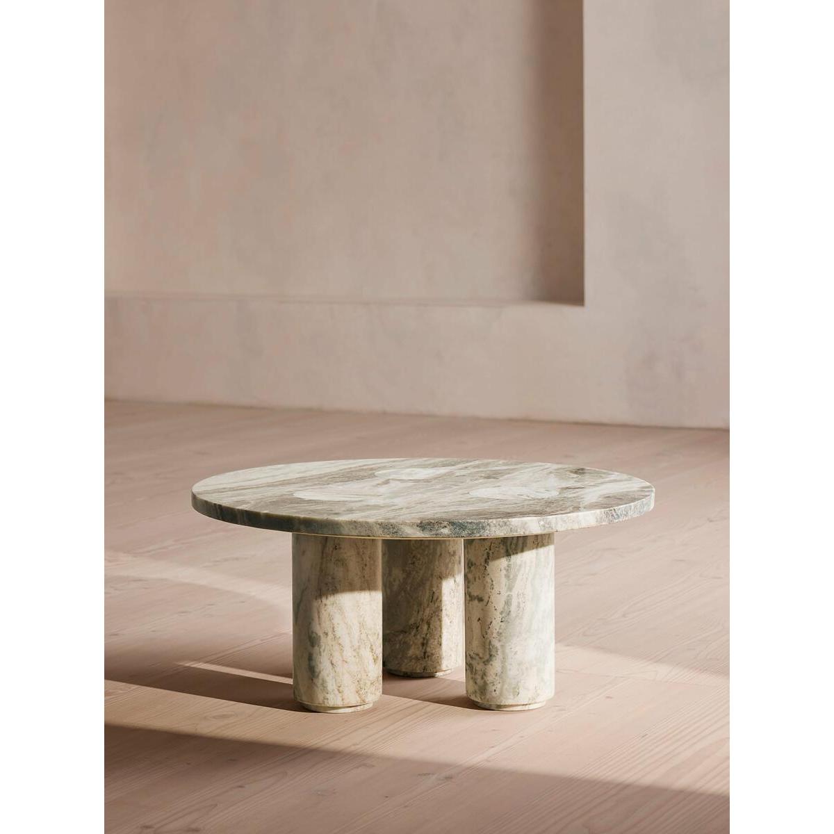 Taking inspiration from the marble textures seen at 180 House in London, our Tisbury coffee table is crafted from black marble - an Indian stone that's harder than typical white marbles and less likely to scratch or mark. The table has three sturdy legs set into the rounded table top which adds to the sculptural quality of the piece. It is available in two colour variations, which both represent the beauty of the stone. Marble coffee table Round top Three legs Dark Terra Bianca Marble Available in brown and black variations Variations in the marble make each piece unique Marble sourced from India Inspired by 180 House