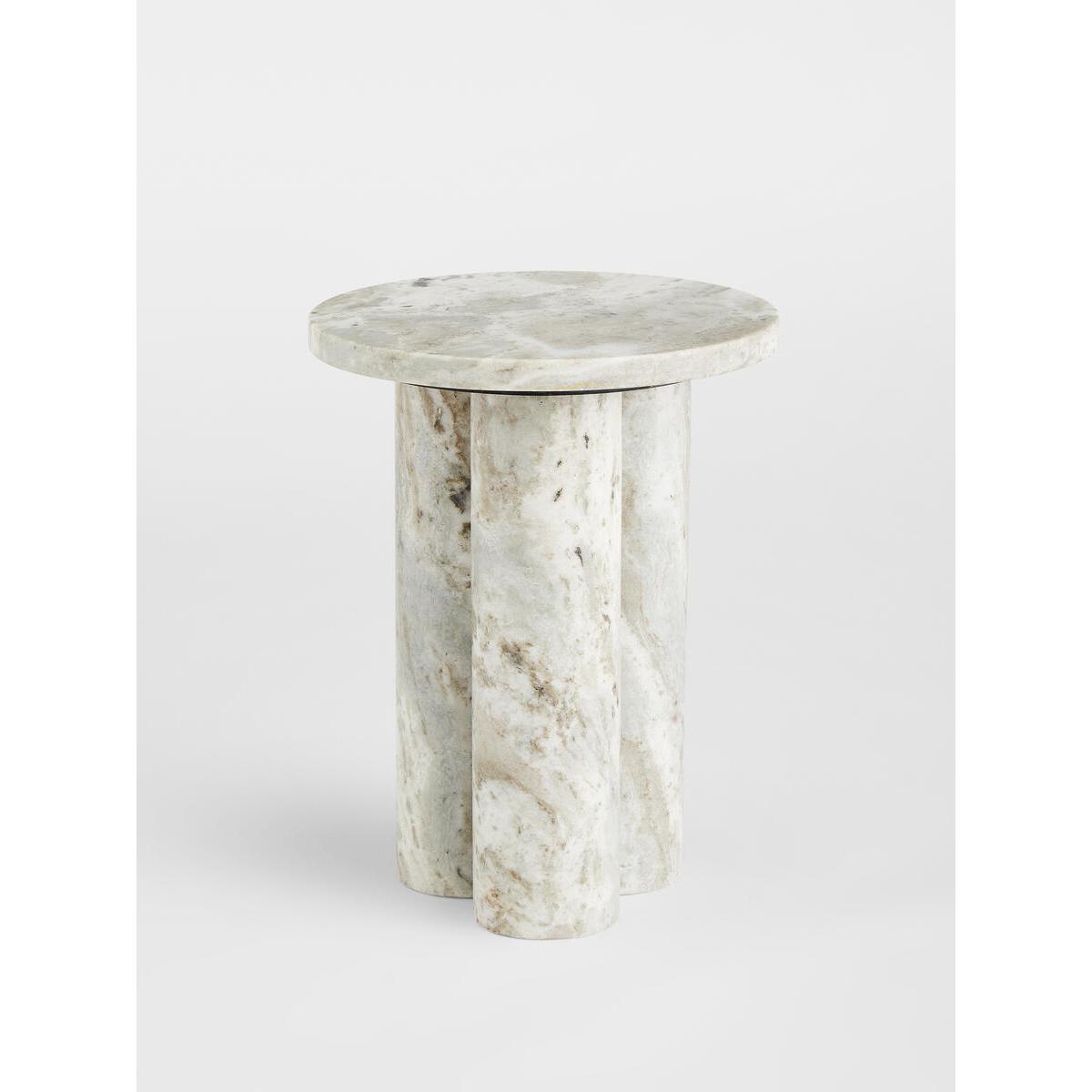 Taking inspiration from the marble textures seen at 180 House in. London, our Tisbury side table is crafted from Fantasy Brown marble- an Indian stone that's harder than typical white marbles and lesslikely to scratch or mark. The side table has three sturdy columnsset into the rounded table top, adding to the sculptural quality ofthe piece. It is available in three colour variations thatrepresent the beauty of the stone. Marble side table. Round top. Three legs. Fantasy Brown marble. Available in brown, green and black variations. Variations in the marble make each piece unique. Pair with the Tisbury coffee table. Inspired by 180 House.