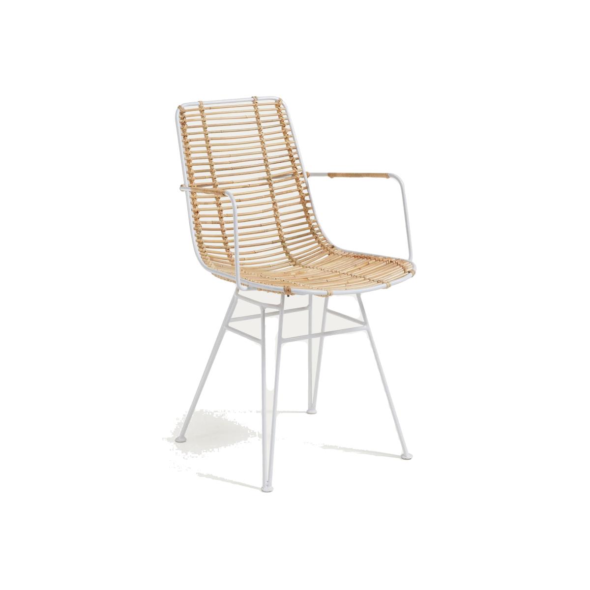 Tishana rattan and white steel chair with armrests