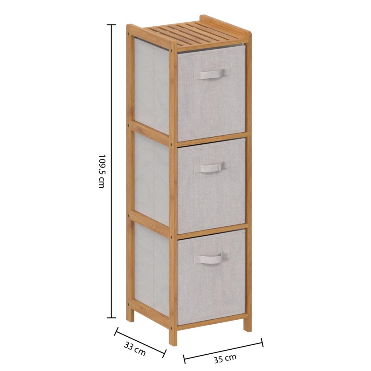 * Includes 3 drawers* Bamboo frame* Full assembly required* Drawers made from fabric Organise in style with the Tissa White 3 Box Storage Unit! Featuring a clean bamboo frame and three fabric baskets, it’s perfect for adding a touch of modern charm to your space.