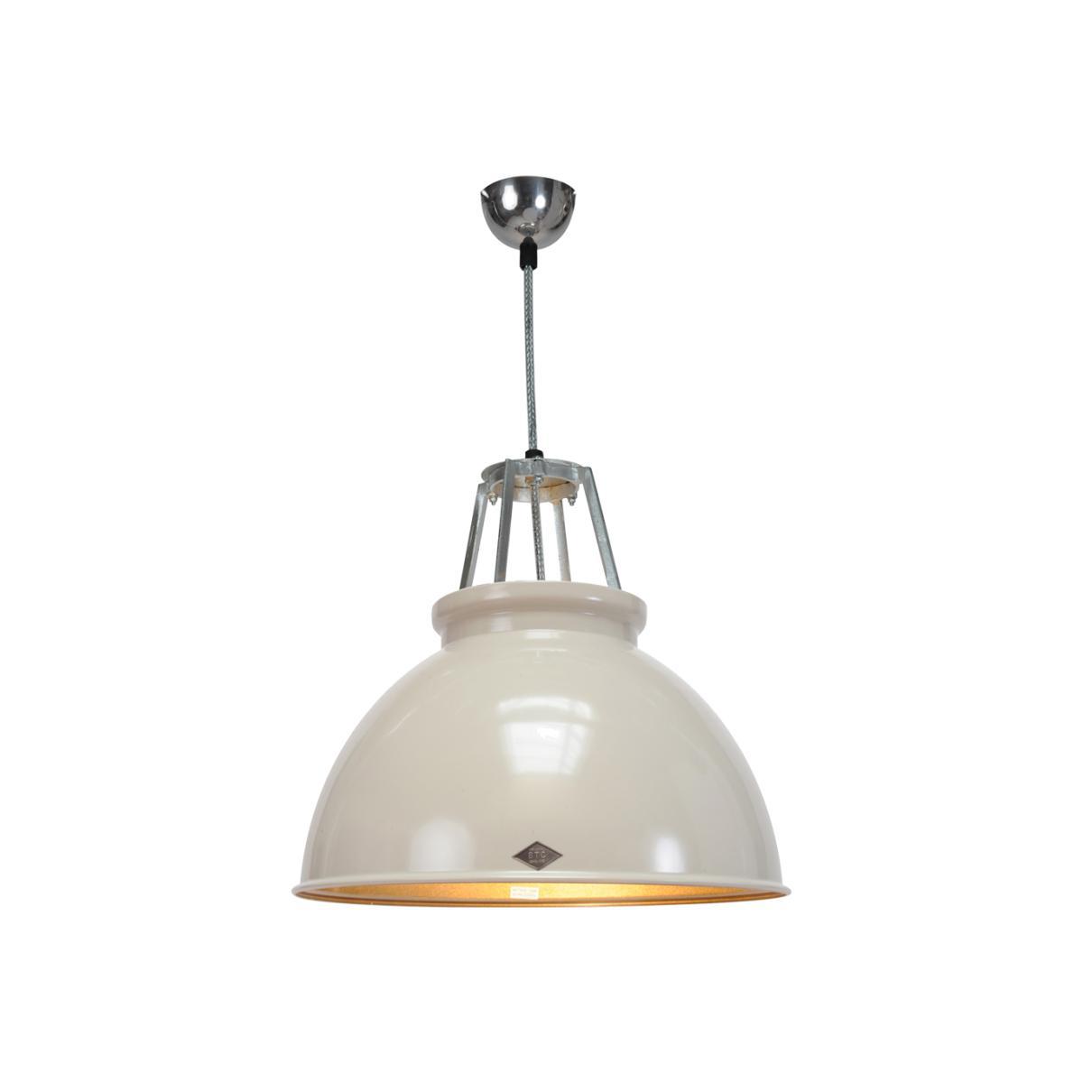 Based on an original 1940s design, often seen in factories, offices, stations and industrial units of the period, the Titan pendant lamp by designer Peter Bowles epitomises industrial-chic style. Exquisitely hand-spun from aluminium, this dome-shaped piece is available in a choice of sizes, a wide range of colours including different interior colours with optional glass visors to perfectly match your interior scheme. Complete with a sturdy steel braided cable, the detailing of the open casting creates a wonderful and visually striking lighting choice - ideal for a kitchen or hanging above a dining table.