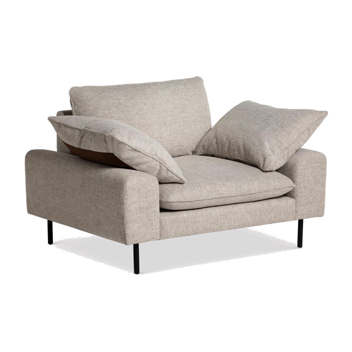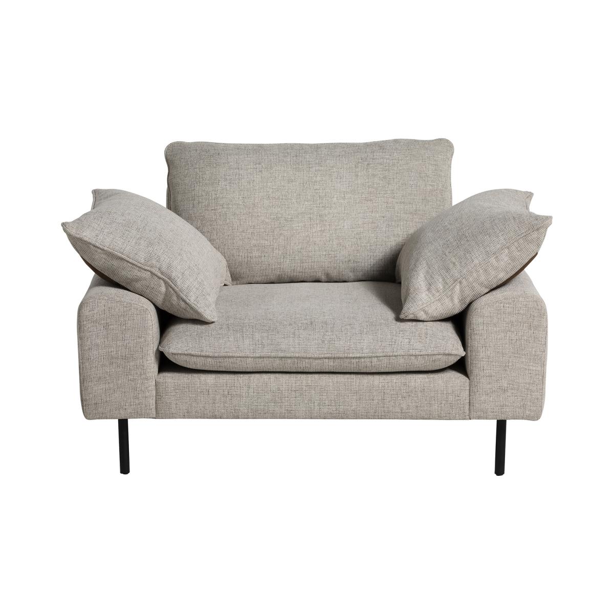The Titan Chair exhibits a laidback elegance with deep set seats in an on trend woven neutral shade. The contrasting matt black steel legs offer an openness and showcase its European contempoary design. The Titan Chair is accompanied by two gorgeous feather filled scatters so you can cosy up in the soft arms, ready for a cosy evening of relaxation.
