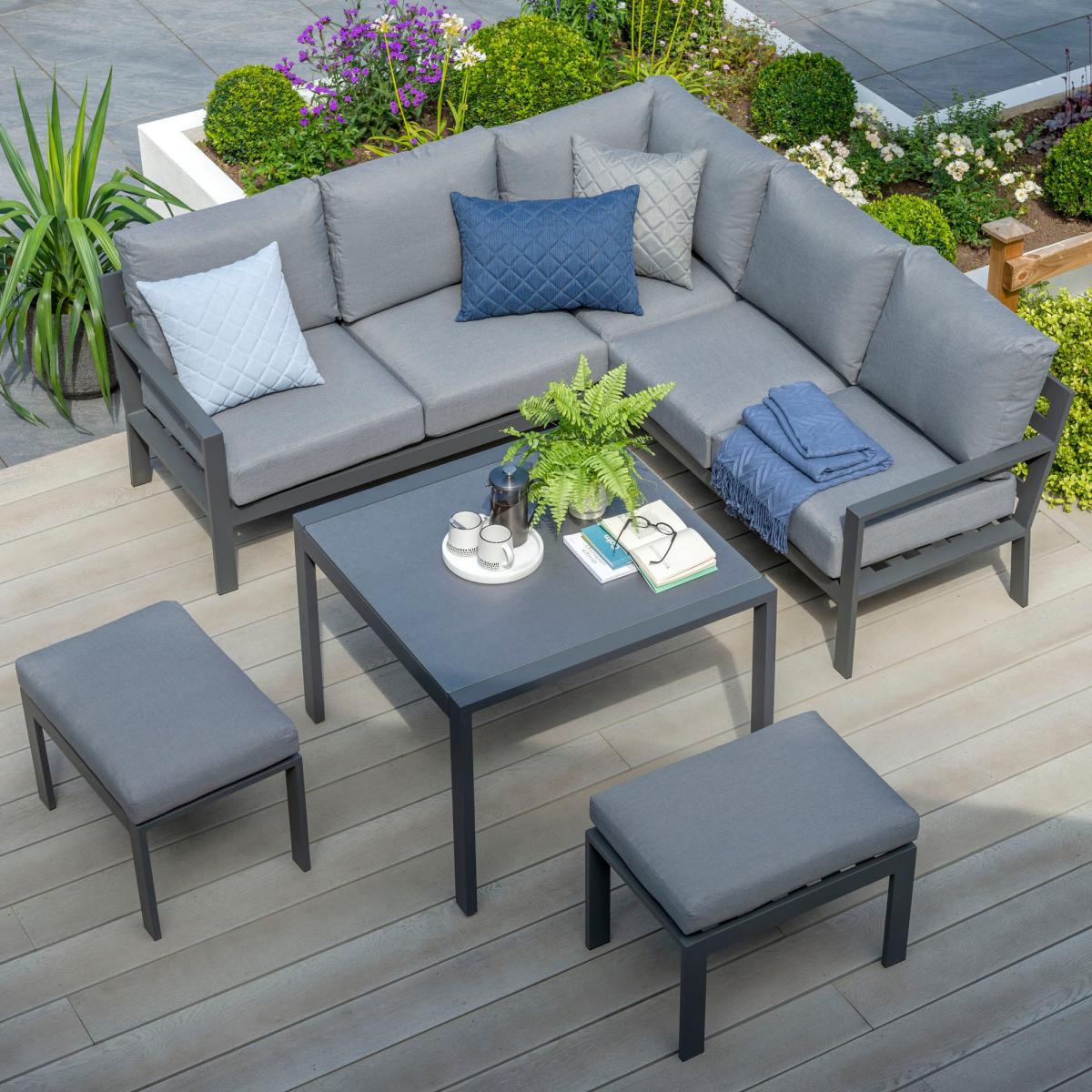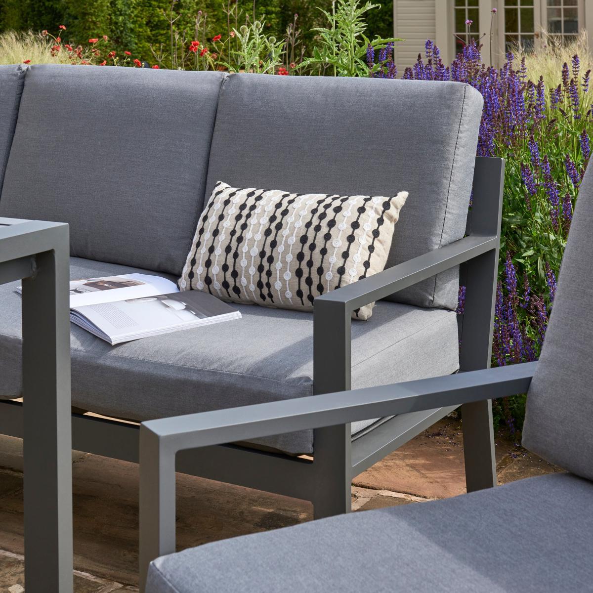 I love the Titchwell 6 Seater Grey mini corner sofa for its sleek, contemporary look that suits a variety of garden styles. Its dark grey colour is highly versatile, working well with both modern and more traditional outdoor spaces. It’s ideal for creating an inviting lounge area that can accommodate family or guests comfortably. When styling, consider introducing colourful cushions or throws to add a pop of contrast and personalise the ensemble. Practical tips include pairing it with a weatherproof coffee table, as seen here, for hosting outdoor gatherings or relaxing with a good read. It’s perfect for relaxing alfresco, whether placed on a patio, deck, or in a garden corner, providing a stylish yet practical seating option all year round.
