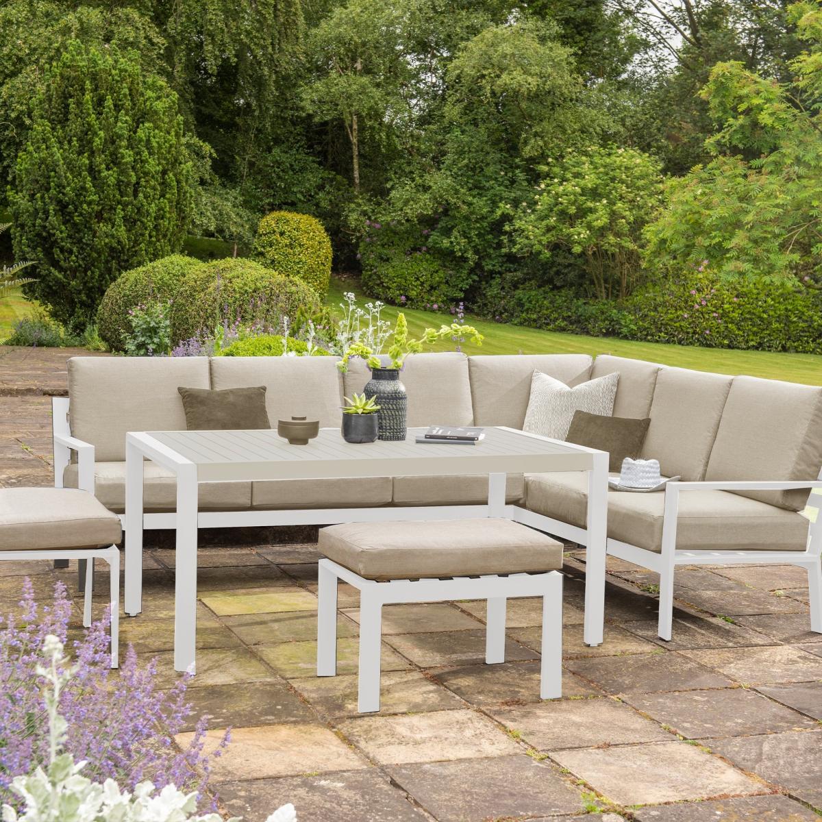 Add a this Titchwell Corner Lounge to your garden this summer for an elevated look. Boasting an elegant white colourway, this set has a weatherproof, lightweight frame, allowing easy manoeuvring of the set. Shower resistant cushions are perfect for the days that aren't so sunny. Part assembly is required to complete this set.