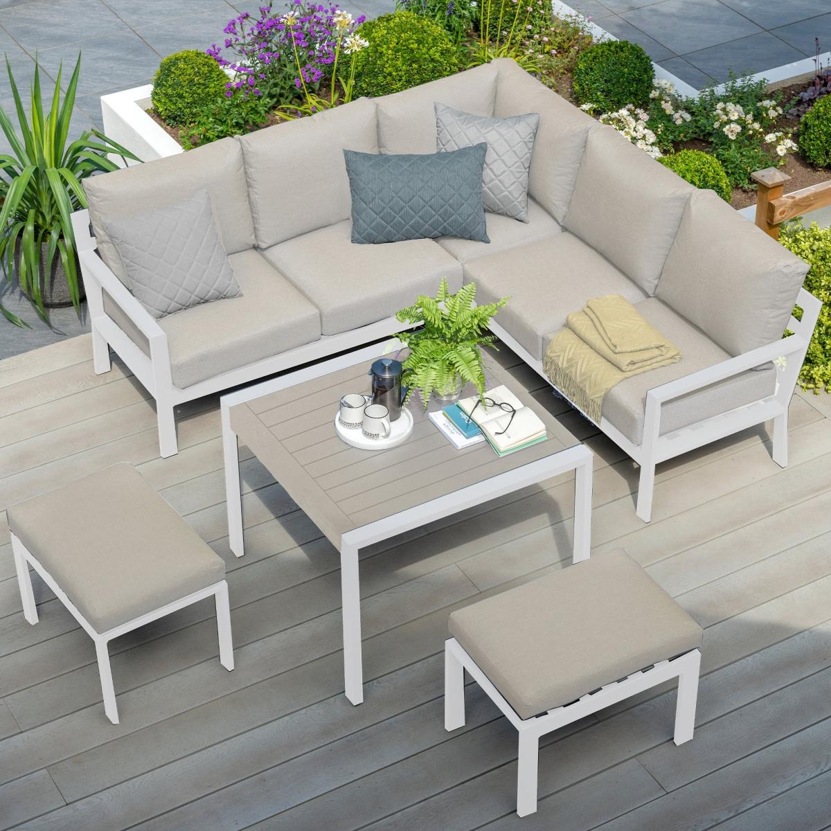 I love the Titchwell White Mini Corner Lounge Set for its clean, versatile look that effortlessly suits a variety of outdoor spaces. Its crisp white finish makes it a great choice for creating a fresh, contemporary vibe, especially in gardens with foliage or colourful planting. It works well in modern, coastal, or minimalist garden interiors, and can be styled with cushions and throws in neutral tones or subtle pastels for added comfort. Practical tips include pairing it with a matching or contrasting outdoor rug and incorporating some colourful pots or lanterns to make the space inviting and functional for outdoor dining or relaxing. Its compact size makes it ideal for smaller patios or courtyards, where it can maximise seating without overwhelming the space.