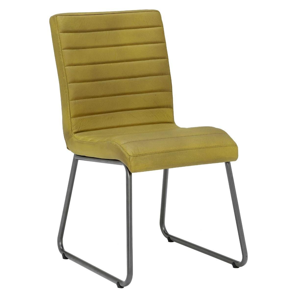 Titus Leather Dining Chair - Yellow - Leather - Striped - W45 x D63 x H87cm - Barker & Stonehouse
