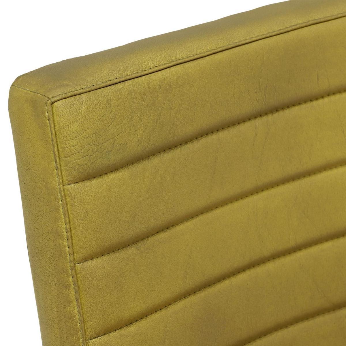 This yellow leather dining chair is a bold yet versatile choice that injects colour and texture into a variety of interiors. Its striped upholstery adds subtle visual interest, while the leather material speaks to durability and a touch of luxury. It works particularly well in contemporary or mid-century styled spaces, where clean lines and innovative finishes are key. Style tips include pairing it with neutral-toned dining tables and adding decorative cushions or throws to soften its modern edge. To enhance its visual appeal, consider using it in a dining room with complementary colours or within an eclectic mix of textures to make it stand out as a statement piece. Practical layering with glass, wood, or metal accessories can further anchor it within a well curated space.