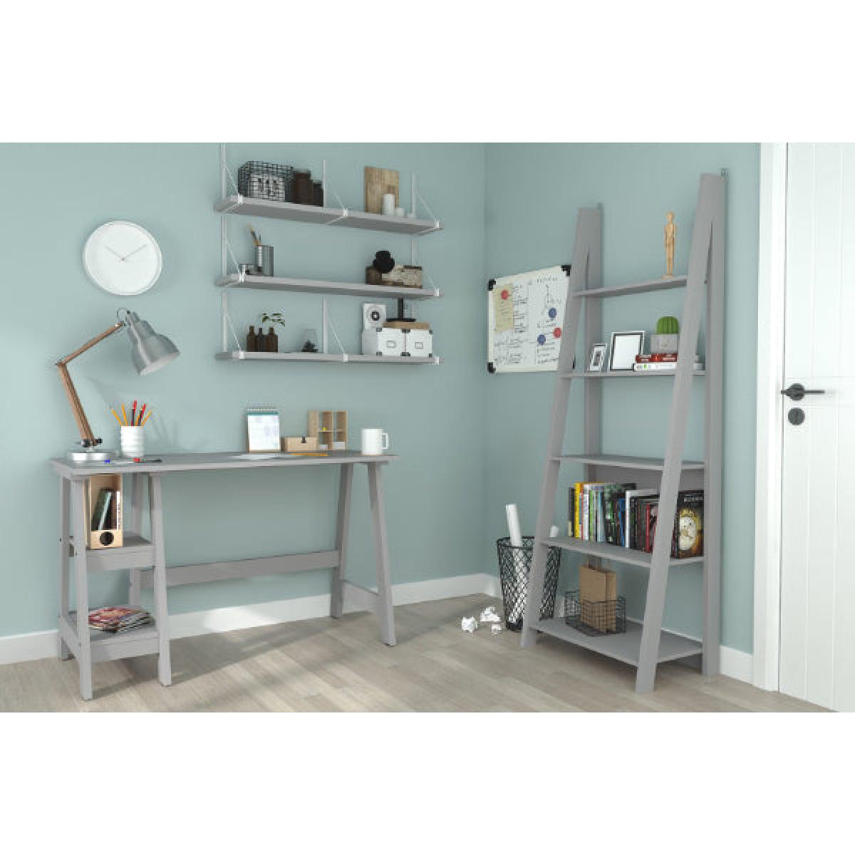 I love the Tiva Grey Desk for its clean, minimalist design that fits well in modern and Scandinavian-inspired interiors. Its neutral grey tone makes it versatile, allowing it to complement both soft, light palettes and more bold, contrasting colours. The ladder-style shelves provide practical storage options, helping to keep workspaces organised without taking up extra room. For styling tips, consider adding a small potted plant or colourful desk accessories to bring some personality and a touch of warmth. It works especially well in home offices or multifunctional rooms, where simplicity and organisation are key.