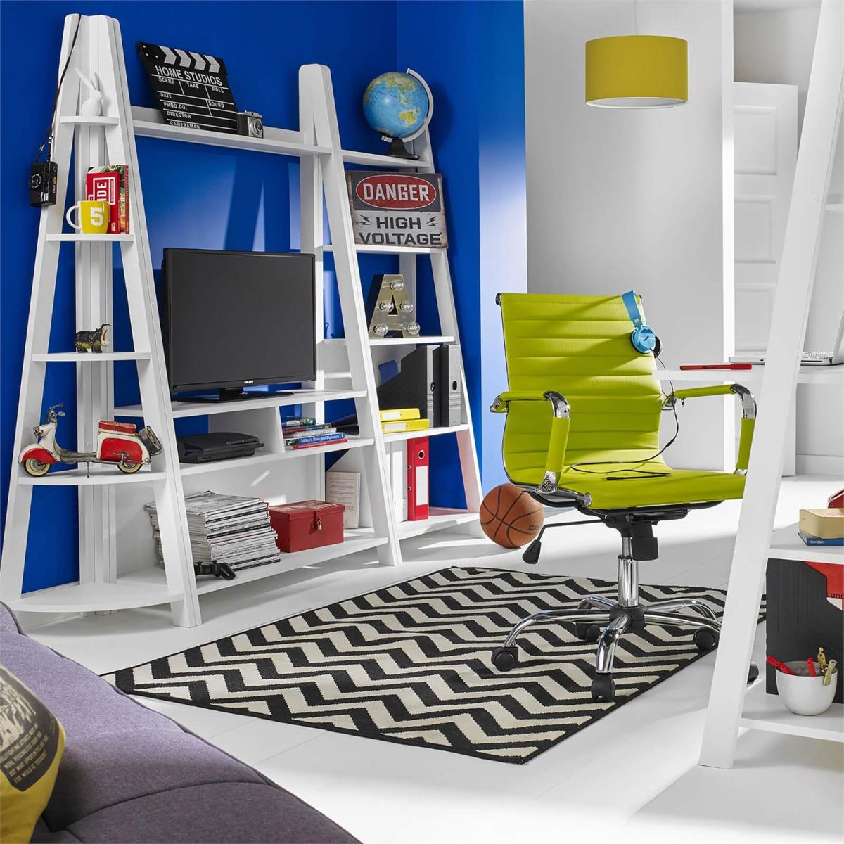 The latest trend of ladder-style storage hasn't been overlook with the Tiva Ladder Desk. Comprising of beautiful, leaning lines and simple shelving structures, the versatile pieces in the Tiva range can be joined together to form larger media or storage unit. Finished in a stunning white and comprising of 3 shelves and a desk area, this is ideal for creating simple shelving or display areas around the home whatever your style!
