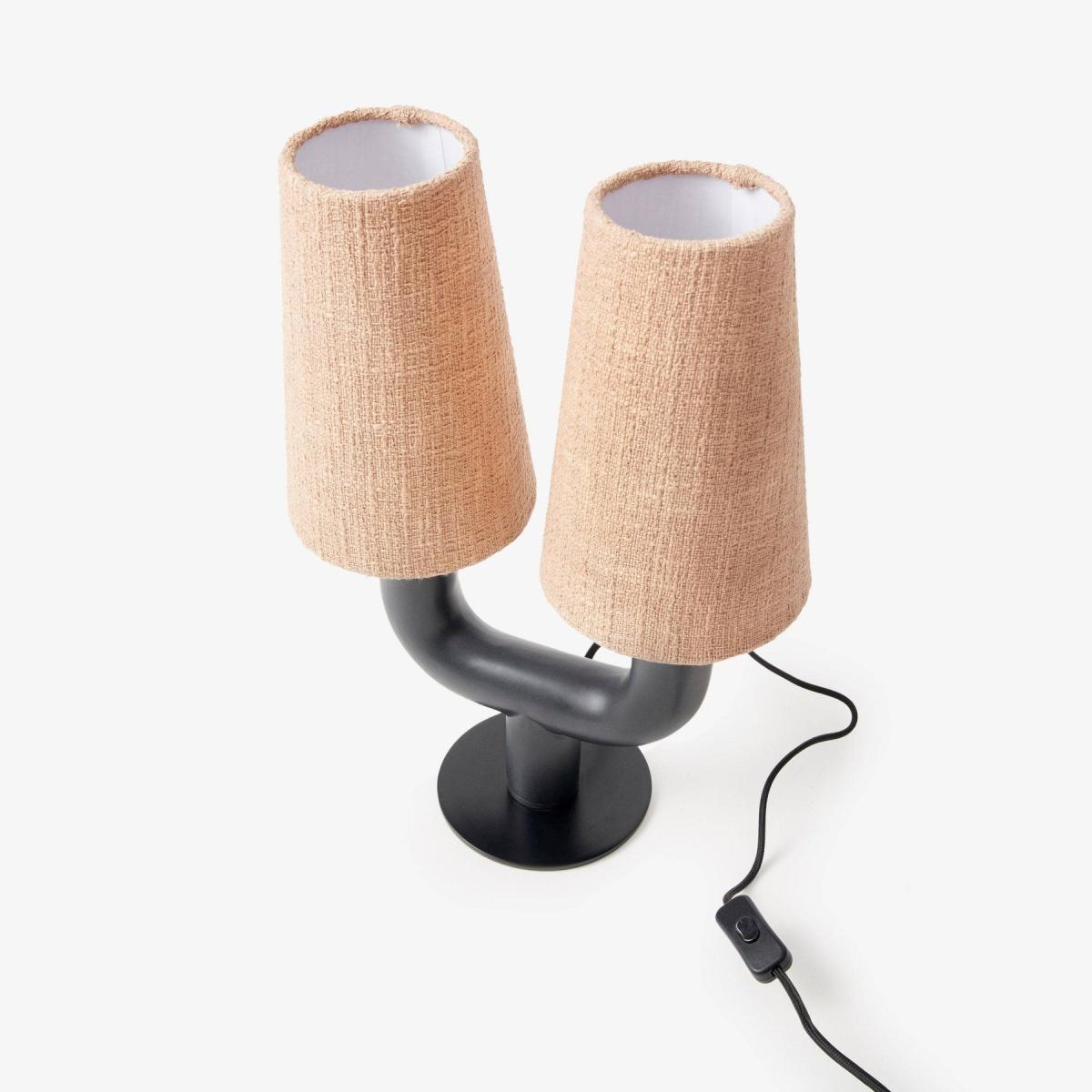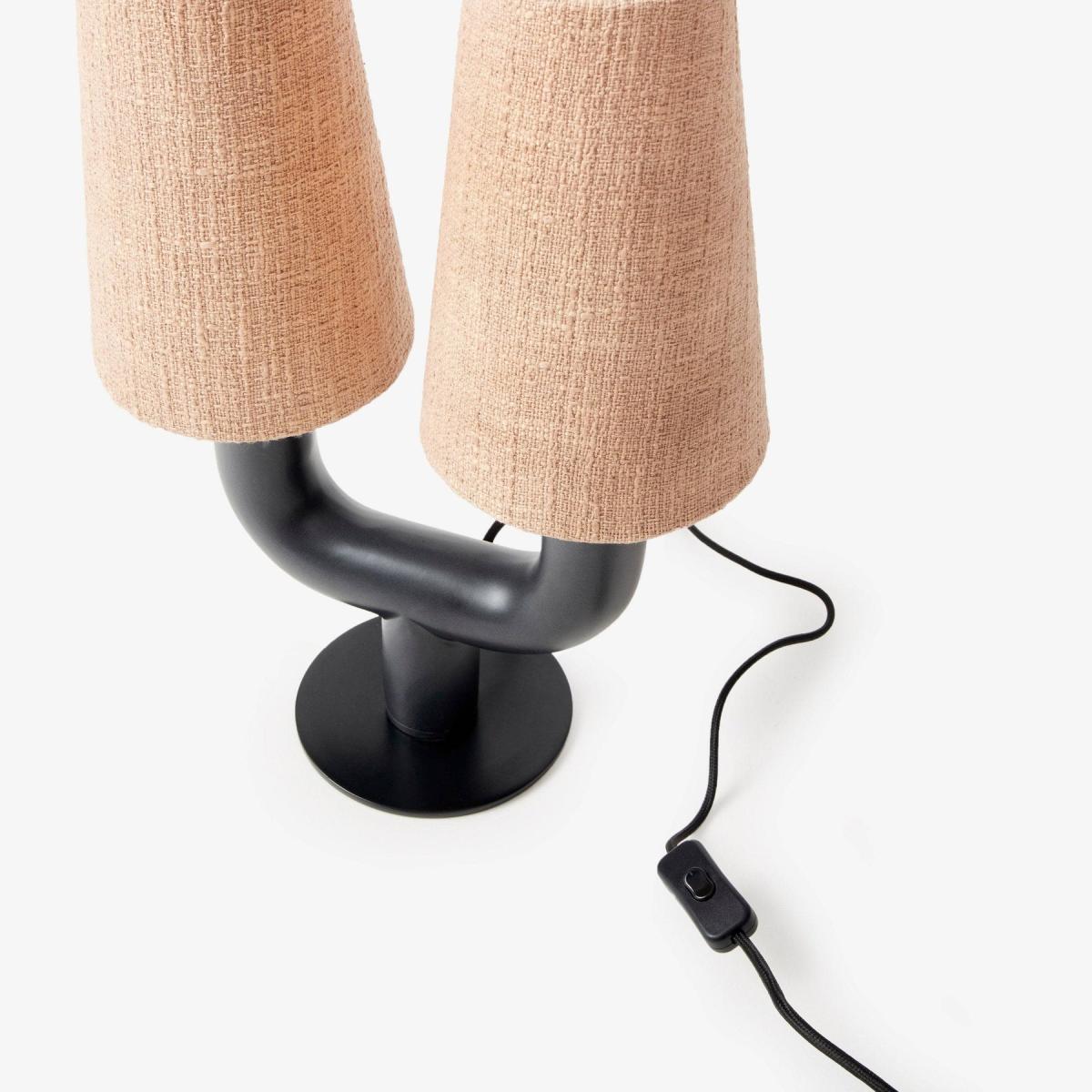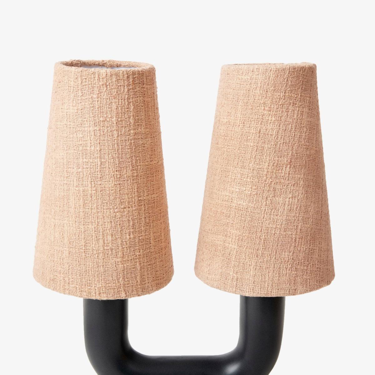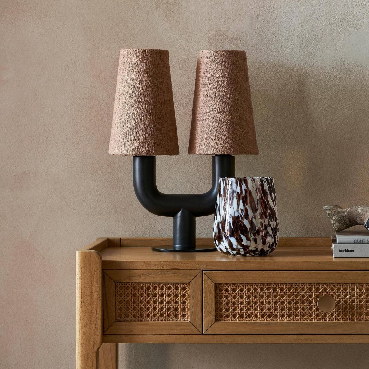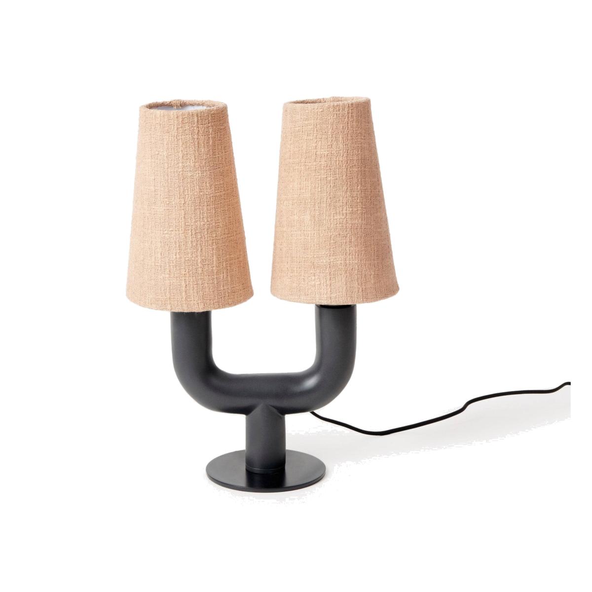 Make double the impact with our Tiwki twin table lamp, a contemporary and functional lighting option that combines classic and modern design elements. With a hint of French mid-century modernism, this two-light table lamp features two classical cone-shaped fabric lampshades in a soft beige, combined with an organic, abstract lamp base in a black hue. Due to its small size, this table lamp is ideal for placement on a variety of surfaces, such as workstations, bedside tables, and console tables.