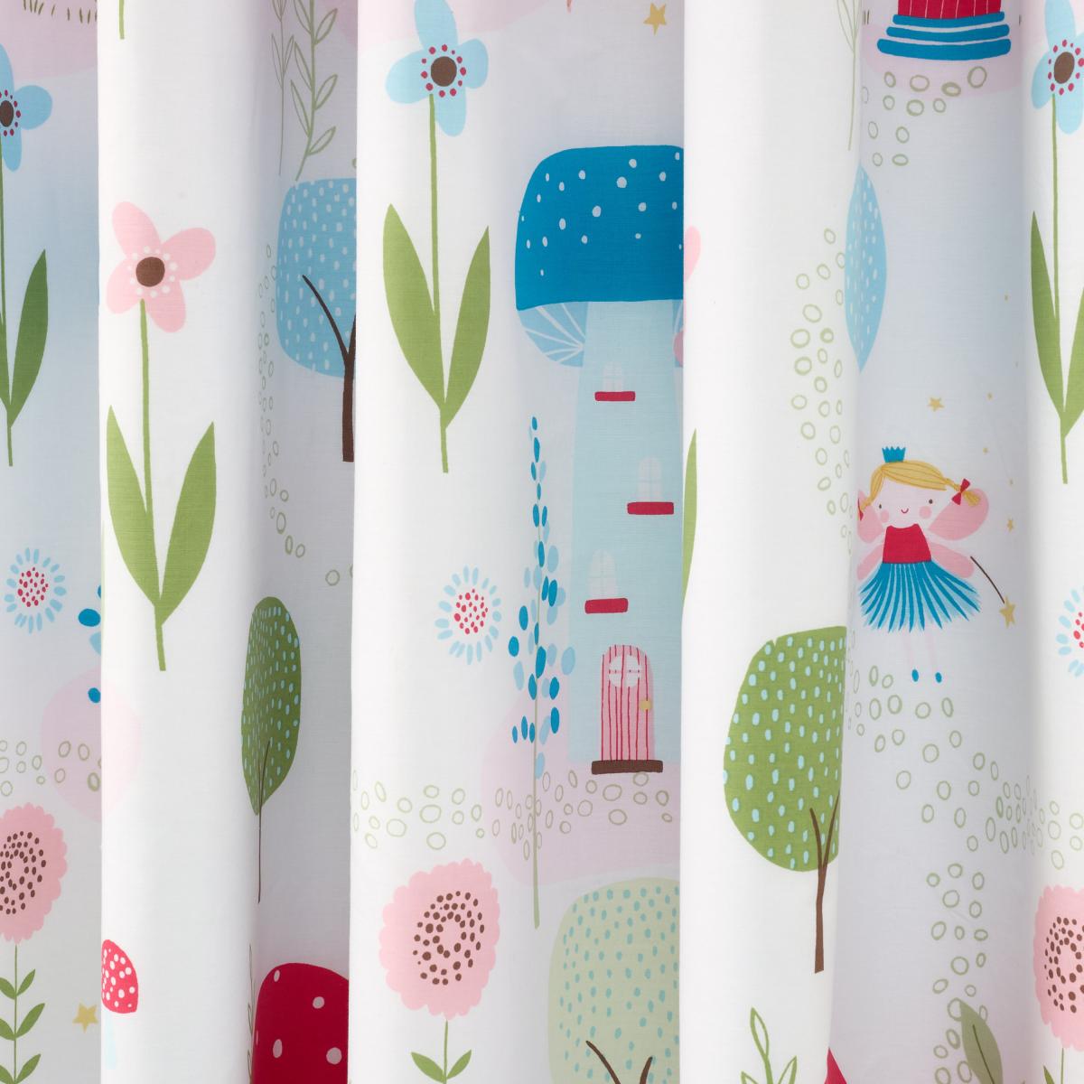 * Black out lined * Soft Polycotton composition * Whimsical Fairy Design * Dry Clean only * Corresponding items available Add a playful touch to your child’s bedroom with our Toadstool Fairies Curtains. These soft polycotton curtains feature a whimsical fairy design, perfect for sparking imagination. The blackout lining keeps light out for a cosy, restful environment. With an eyelet header for easy hanging and included tiebacks, these curtains are as practical as they are charming. Pair them with matching items to create a magical, cohesive space.