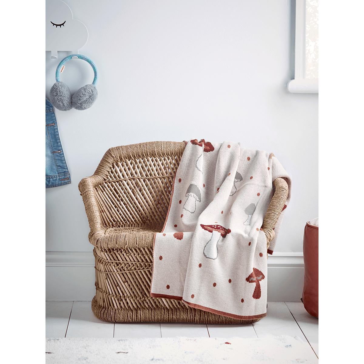 Snuggle up with the little ones in your life and our 100% sustainable cotton Toadstool Throw. Its undeniably cute design and a palette of pinks, reds and browns is bound to bring warmth and comfort to any child’s room. We have styled ours with our new. Bamboo Mini Sofa.