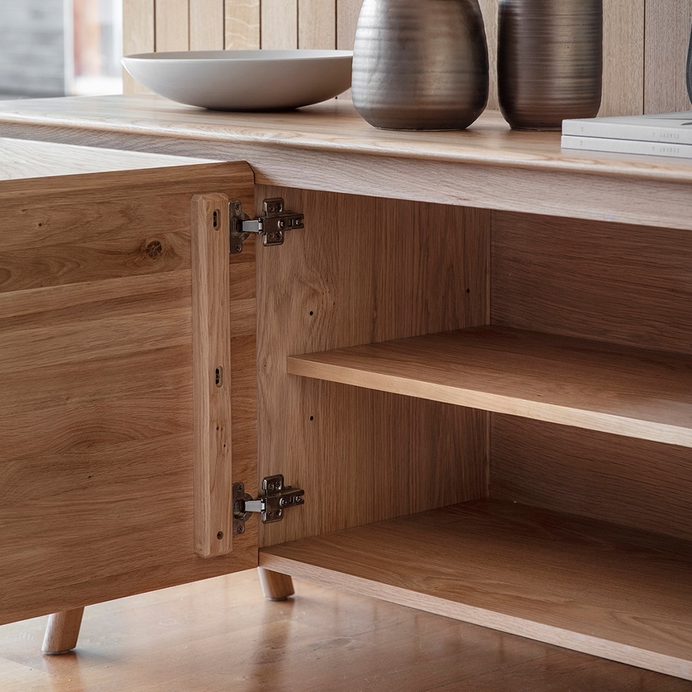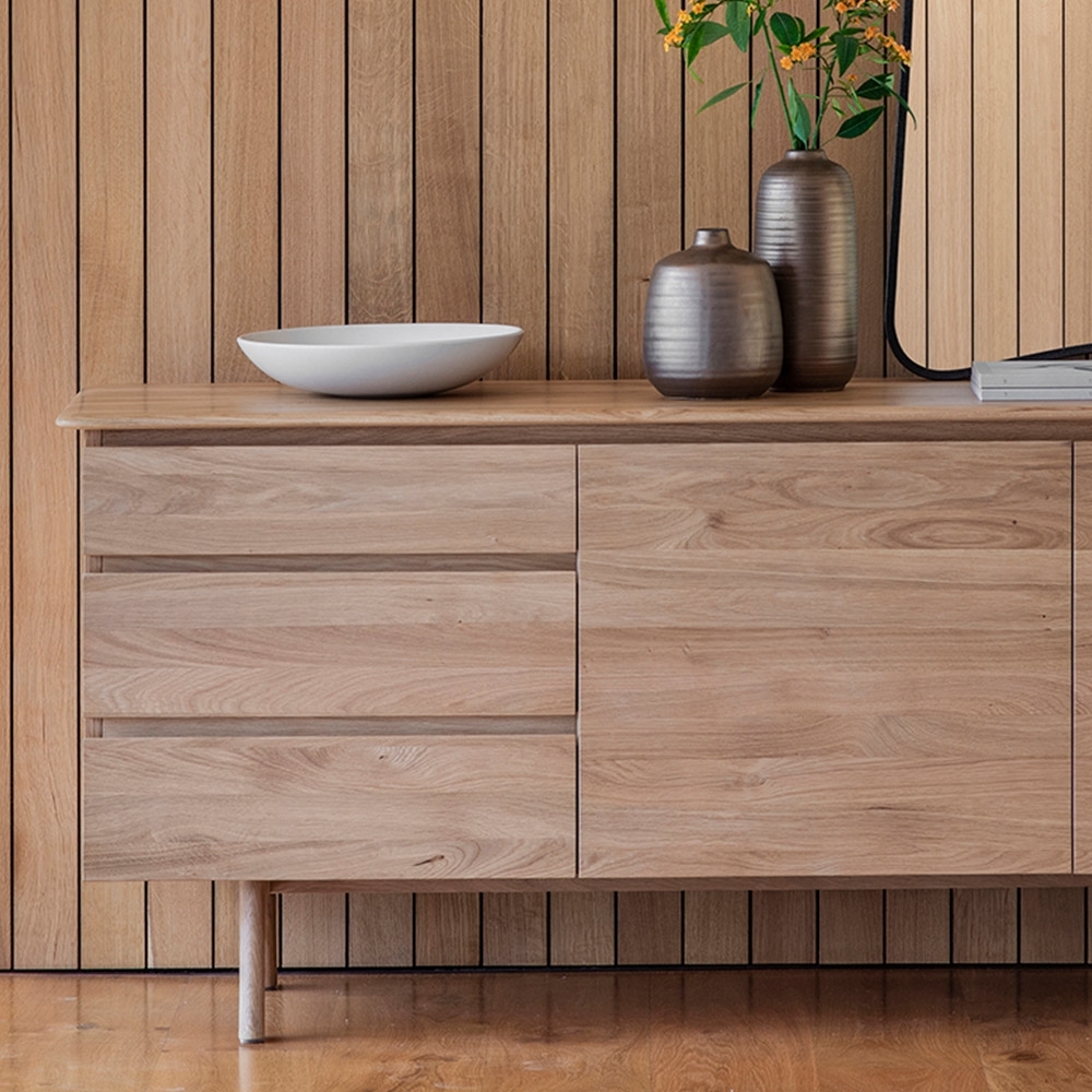 I love the Toarmina sideboard for its clean, minimalist aesthetic that works well in contemporary and Scandinavian-inspired interiors. Its natural wood finish adds warmth and texture, making it a versatile piece that can anchor a dining room, living space, or even a hallway. Practical styling tips include layering on decorative objects like vases, books, or framed photos on top for visual interest, while keeping the interiors inside clutter-free with baskets or organisers in the drawers. Its understated design also provides a great backdrop for statement lighting or artwork above, making it a flexible and functional focal point in a range of interior styles.