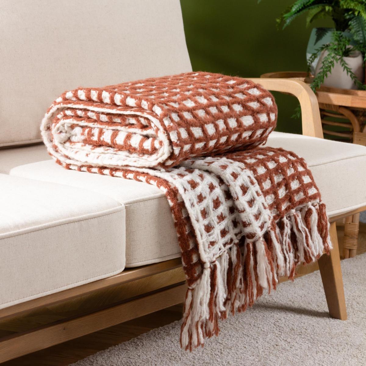 * Check design * Made from acrylic * Dry clean only Snuggle up in Scandi-inspired comfort with the Toasty Throw. Featuring a warming oversized waffle texture in a selection of modern, neutral tones, this throw is the ultimate cosy companion. Its reversible design adds versatility, while the knotted tasselled trim gives it a charming finish. Made from 100% Acrylic, it delivers extra warmth without compromising on softness.