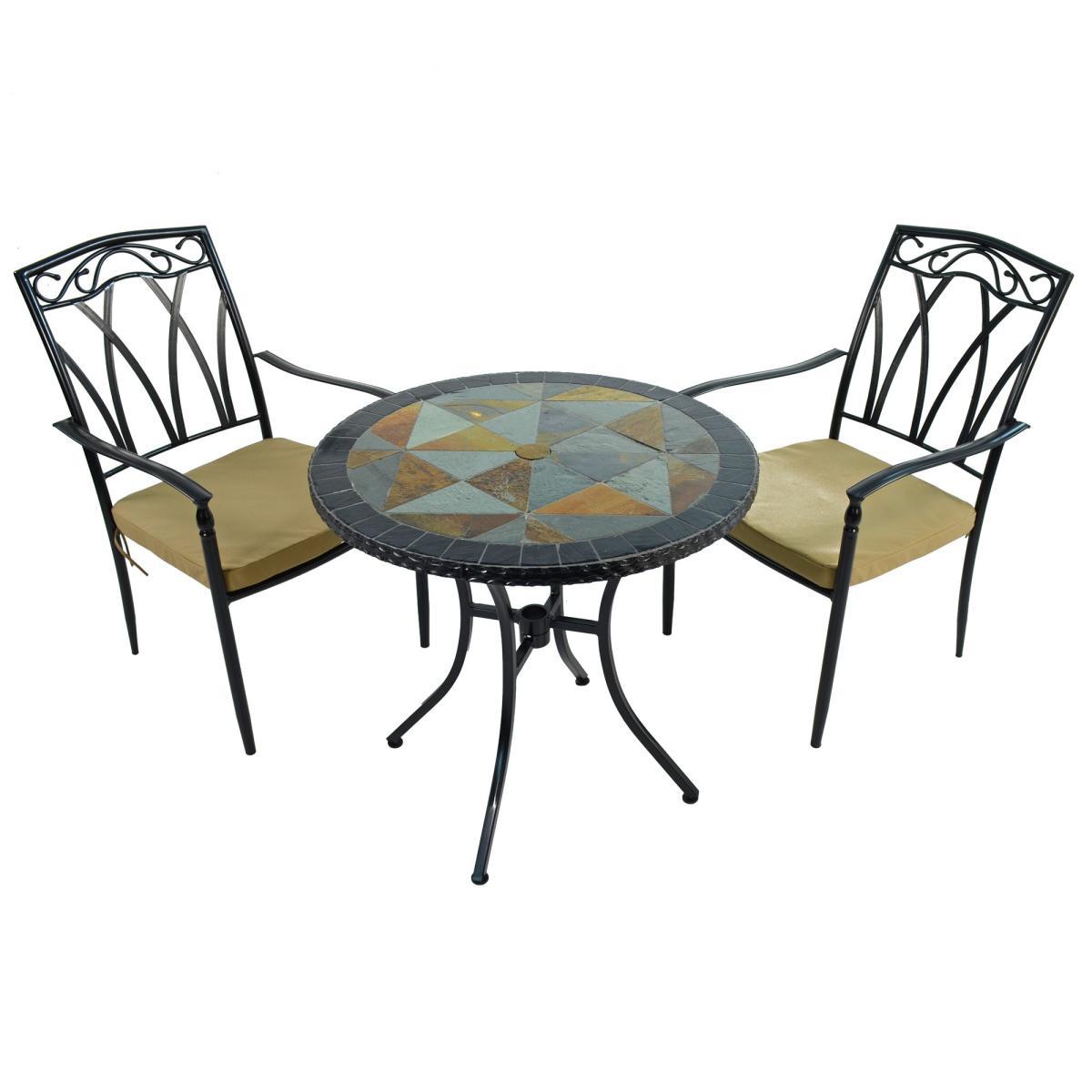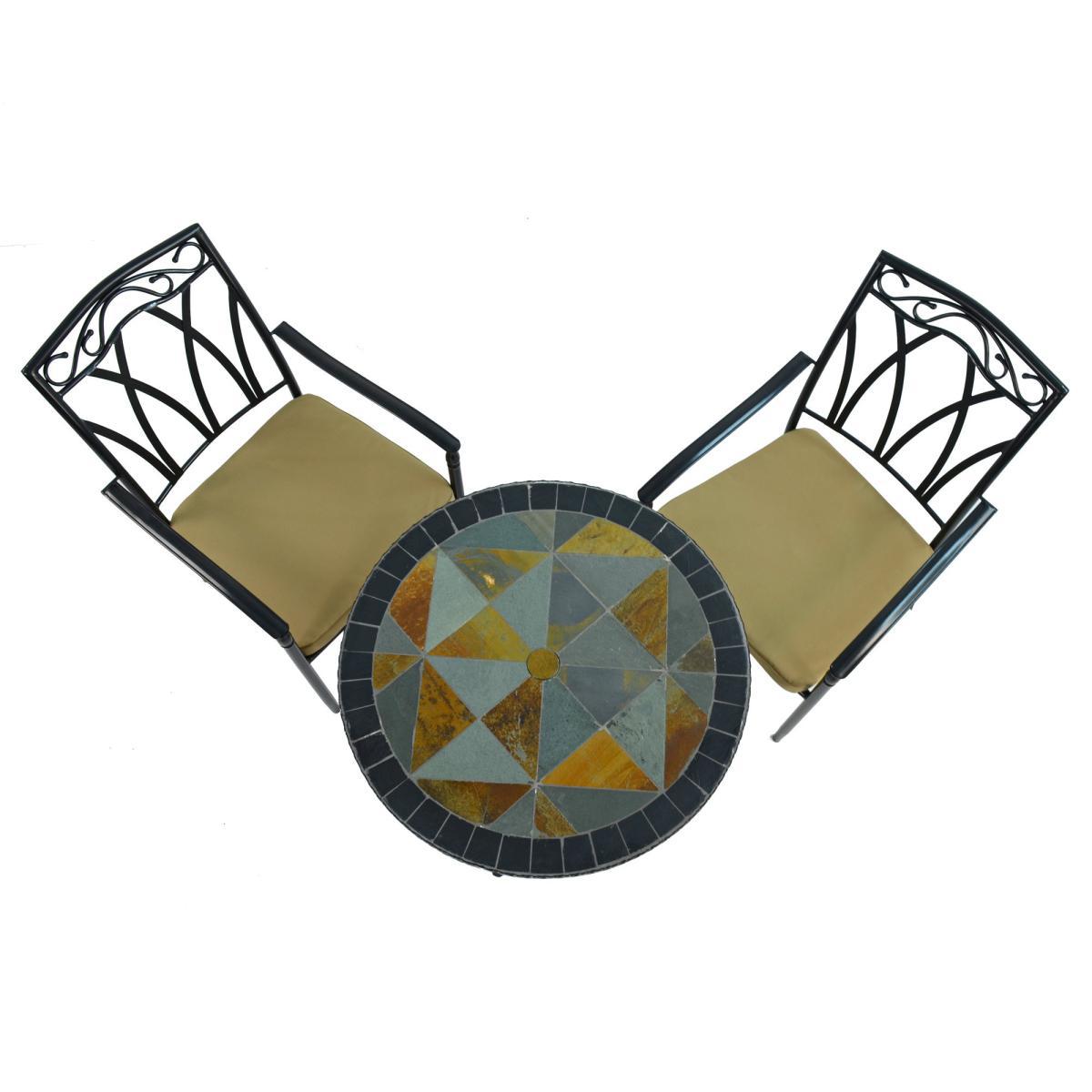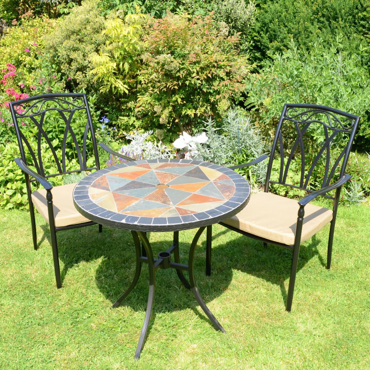 The Europa Leisure Tobarra Table is a beautiful 76cm round bistro table that will add a rustic charm to any garden setting. It is made with hand cut riven stone and slate mosaic, and the inclusion of a multi-tonal mosaic design adds to the look. The table is made with steel legs which are powder coated black. The Ascot Chairs are deep-seated stacking chairs that have a robust frame and the decorative ornate backrest, they would look great alongside any grandiose table either indoors or outside. The chairs also include shower proof cushions with removable covers for added comfort.
