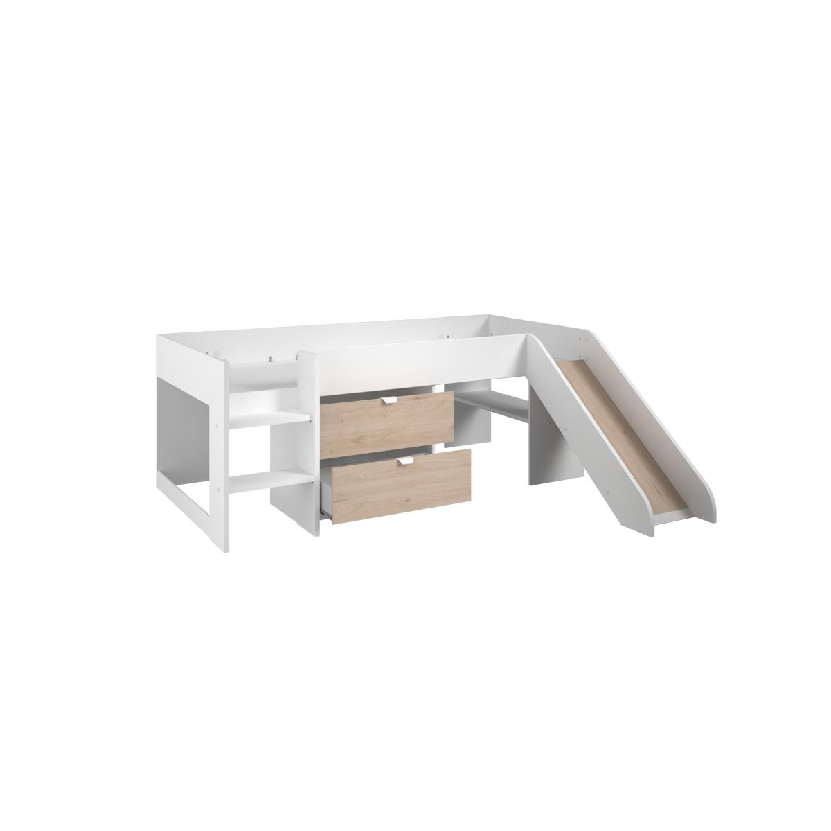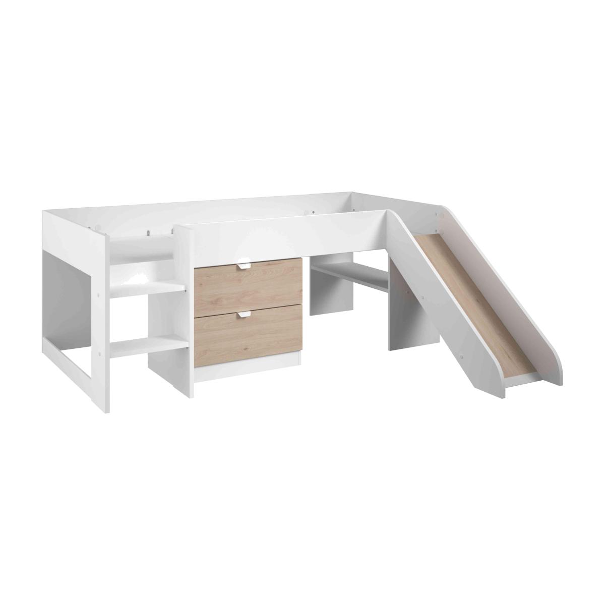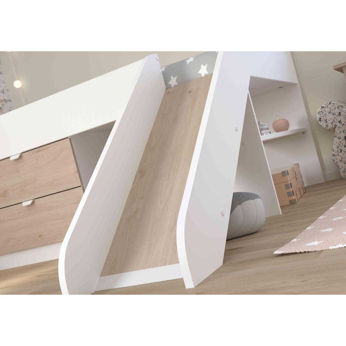 The fun never ends with the Tobo range. Its playful design combines sleep and play and transforms your children’s room into a dream bedroom. The slide feature will make your child feel like they’ve just woken up in Wonderland. It not only entertains your little one for hours, but it also keeps your space clean and tidy too thanks to the two spacious drawers and integrated bookcase. It can store toys, books, and whatever else that’s needed. Plus, it comes in a neutral colourway that matches any type of décor. This is fun design made functional. Climb the ladder to go to bed at night and slide back down again in the morning – this clever storage bed for children makes going to sleep and waking up more fun. Why you'll love it This slide bed is designed to be fun and built to last. Children’s bedroom furniture that’s creative and practical. Your child will love the integrated slide. Plenty of storage space too – 2 deep drawers and a shelf. Versatile neutral colour scheme works with any decor. Durable melamine finish. Sturdy metal bed frame with wooden slats. A Furniture Village online exclusive. The Tobo slide bed is part of our children’s bedroom furniture collection. What you need to know Mattress not included. Requires a Euro single mattress, 90 cm x 200 cm, with a maximum depth of 15 cm. Please allow at least 15 cm at either end of the bed for assembly. Finish is not heatproof. Avoid abrasive cleaners. Protect the surface with coasters and placemats at all times. Please note: this item requires self-assembly. WARNING!Furniture can tip over unexpectedly and cause injury. This item must be fixed to a wall using the anti-tip kit provided. Be sure to use the correct wall fixings suitable for the walls in your home. Furniture Village is not able to fix anti-tip devices for you. Seek professional advice if you are unsure.