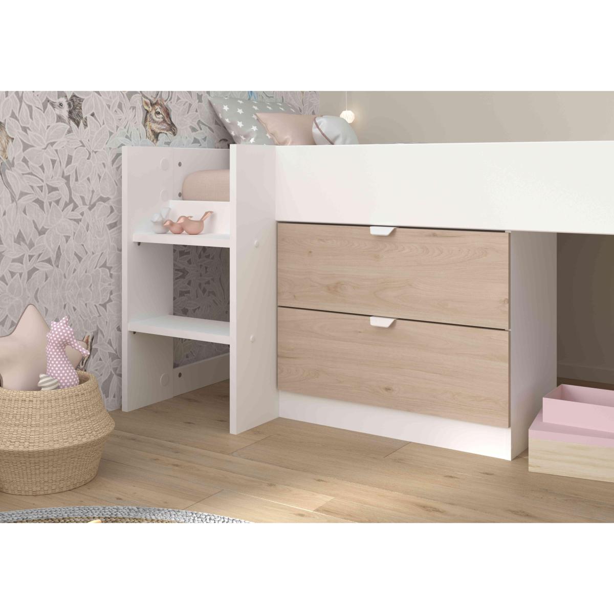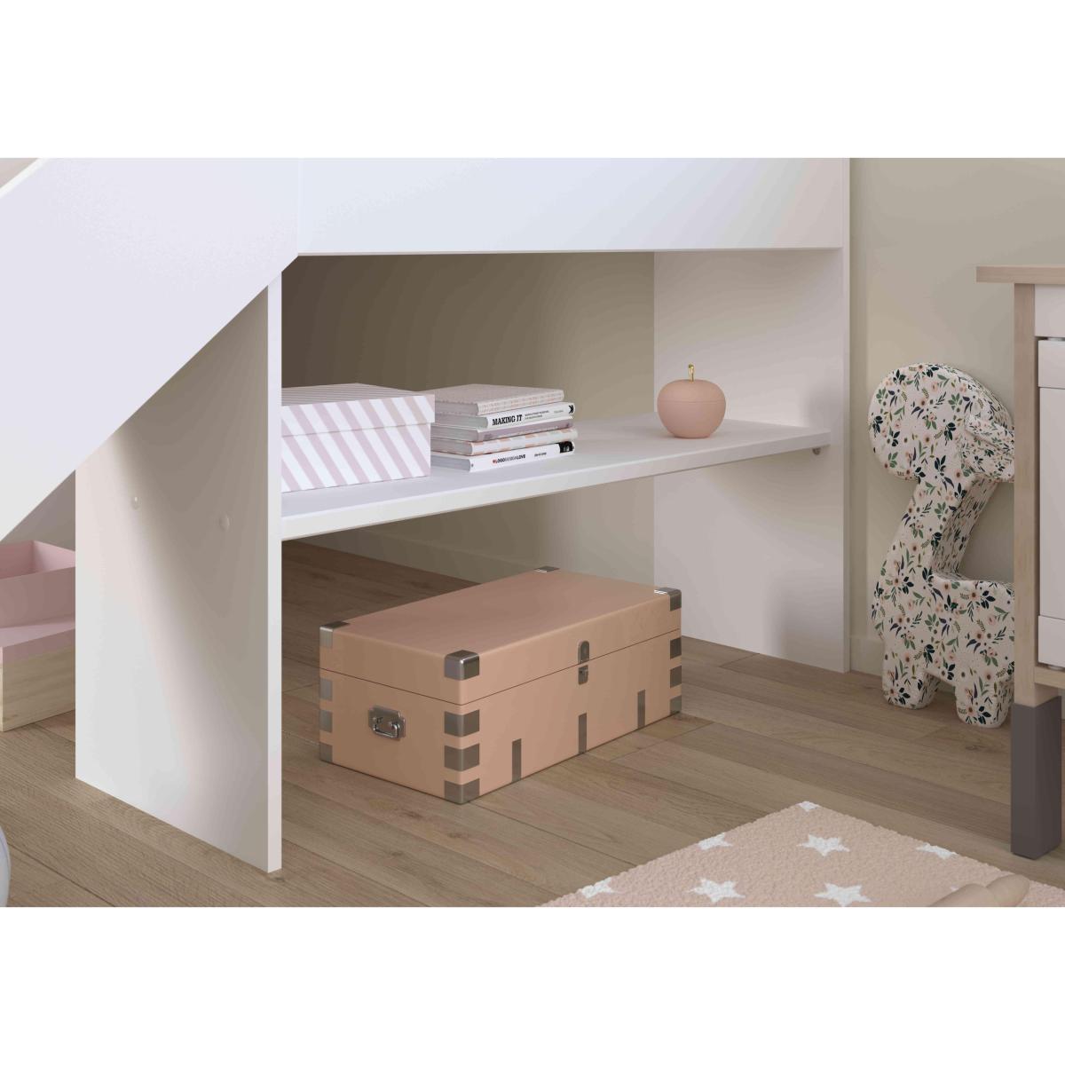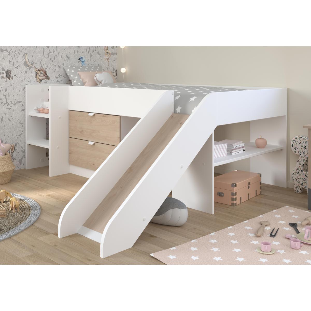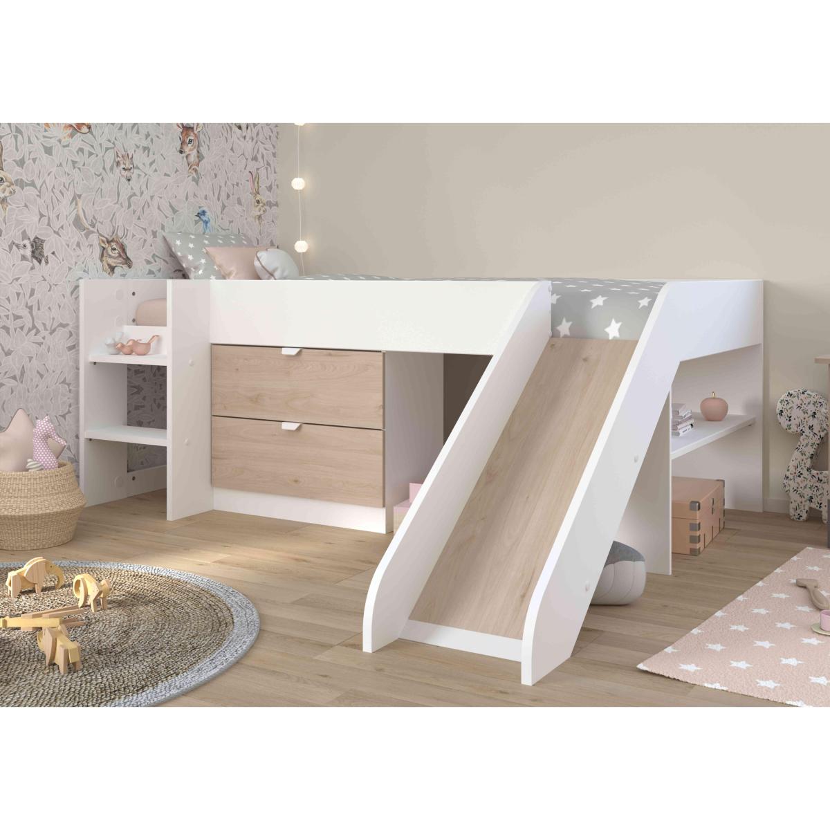 The fun never ends with the Tobo range. Its playful design combines sleep and play and transforms your children’s room into a dream bedroom. The slide feature will make your child feel like they’ve just woken up in Wonderland. It not only entertains your little one for hours, but it also keeps your space clean and tidy too thanks to the two spacious drawers and integrated bookcase. It can store toys, books, and whatever else that’s needed. Plus, it comes in a neutral colourway that matches any type of décor. This is fun design made functional. Climb the ladder to go to bed at night and slide back down again in the morning – this clever storage bed for children makes going to sleep and waking up more fun. Why you'll love it This slide bed is designed to be fun and built to last. Children’s bedroom furniture that’s creative and practical. Your child will love the integrated slide. Plenty of storage space too – 2 deep drawers and a shelf. Versatile neutral colour scheme works with any decor. Durable melamine finish. Sturdy metal bed frame with wooden slats. A Furniture Village online exclusive. The Tobo slide bed is part of our children’s bedroom furniture collection. What you need to know Mattress not included. Requires a Euro single mattress, 90 cm x 200 cm, with a maximum depth of 15 cm. Please allow at least 15 cm at either end of the bed for assembly. Finish is not heatproof. Avoid abrasive cleaners. Protect the surface with coasters and placemats at all times. Please note: this item requires self-assembly. WARNING!Furniture can tip over unexpectedly and cause injury. This item must be fixed to a wall using the anti-tip kit provided. Be sure to use the correct wall fixings suitable for the walls in your home. Furniture Village is not able to fix anti-tip devices for you. Seek professional advice if you are unsure.