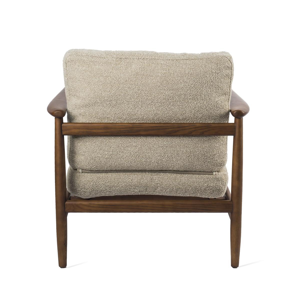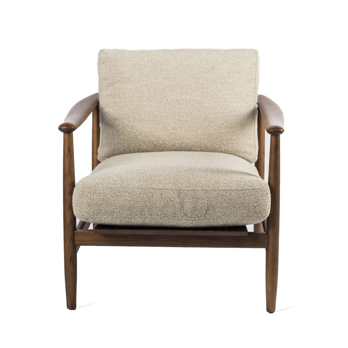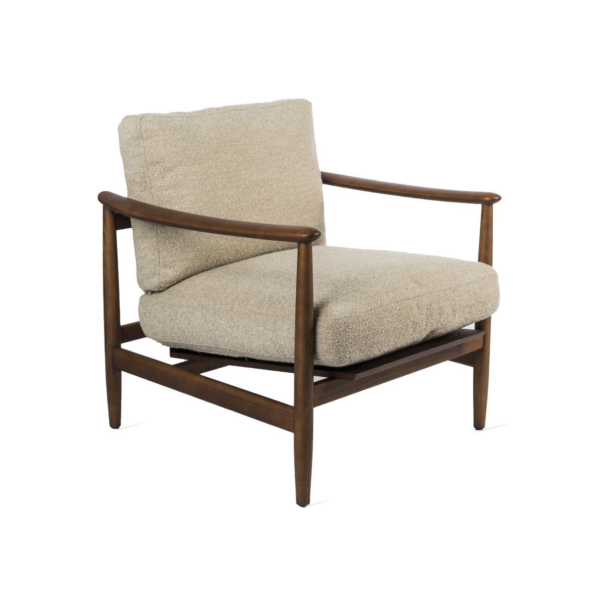 I love this armchair for its blend of natural materials and timeless appeal. The wood frame provides a sturdy, warm touch that works well in both mid-century modern and scandinavian-inspired interiors, while the terry cloth upholstery adds a relaxed, inviting feel. It’s a versatile piece that can serve as a statement accent in a living room corner or add texture in a cosy reading nook. For styling tips, consider placing it with a plush foldable throw or a petite side table to create an inviting, lived-in vibe. Its neutral beige tone makes it easy to pair with colourful accessories or layered textures, making it a practical yet stylish addition to many interiors.