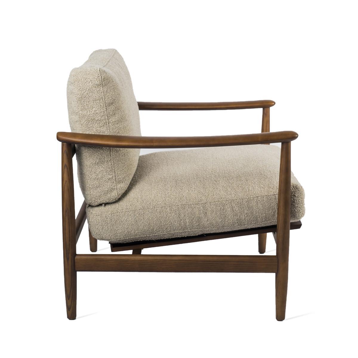 Inspired by Scandinavian furniture from the 50s and, in particular, organic design, the Todd armchair is a superb piece of woodwork with perfect finishes. The structure is made of FSC-certified, stained, solid ash wood. The wood with great finesse adopts natural, flexible and fluid forms. The Todd armchair is upholstered in a wonderful terrycloth. This downy, comforting and warm material has a style that is both cocooning and elegant. A timeless piece!.
