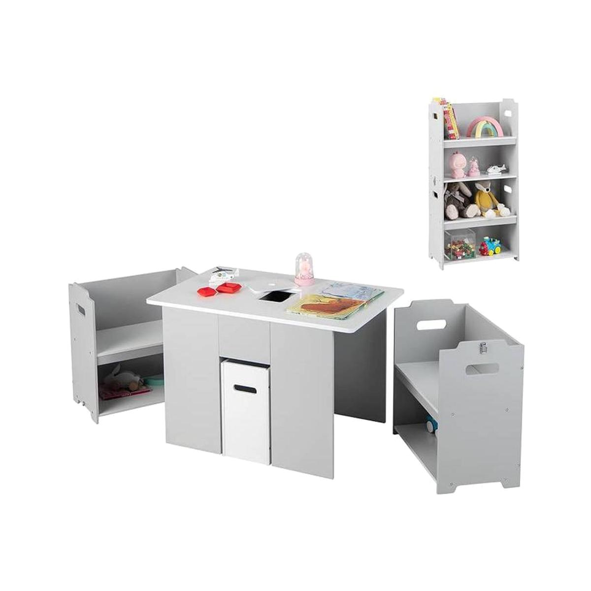 Our kid's activity table and 2 chairs set are specially designed to offer toddlers nice learning and playing space. There is a removable lid on the tabletop so that kids can remove the lid to acquire additional storage space. Besides, the storage bin under the table also expands overall storage space and can be used separately. Kids can stow 2 chairs under the table when not in use or stack them to create a 4-tier storage cabinet. Thus, this table and chair set is a suitable gift for kids to cultivate a good habit of sorting.