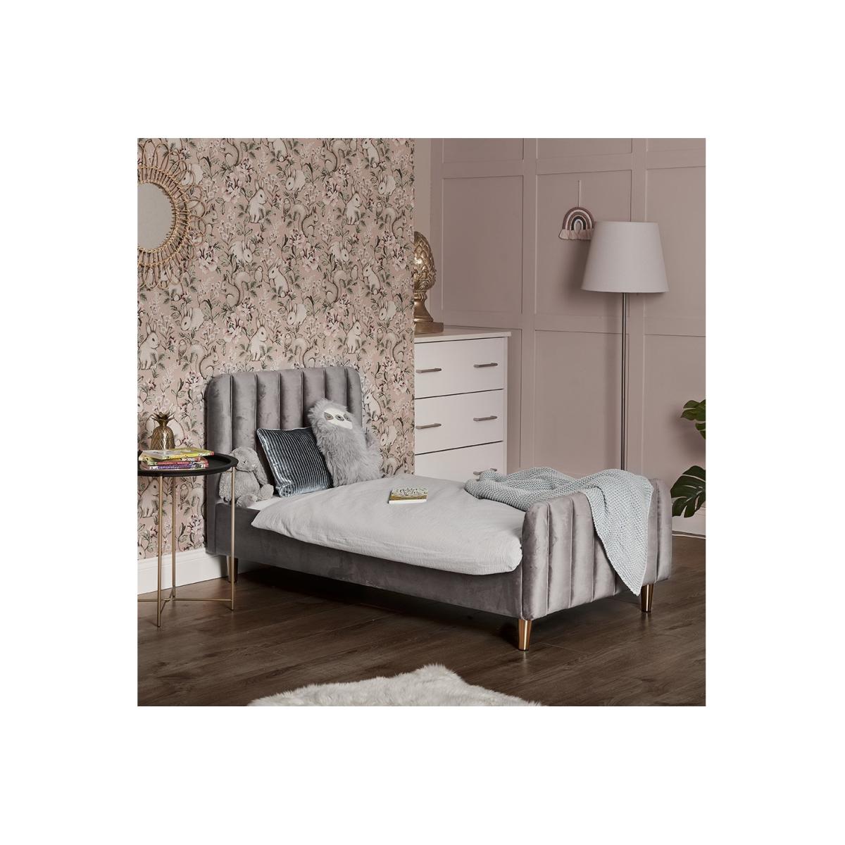 Creating a chic and luxurious feel, the Gatsby grey velvet bed brings a rich, revival feel to your child's bedroom. Comprising a velvet headboard and footboard, this boutique-style toddler bed will sit perfectly in any bedroom. Once your toddler has outgrown their cot, the Gatsby allows your child to transition gradually should they feel that the move straight into a regular bed is too daunting. Designed with little ones in mind, the Gatsby sits low to the ground, protecting them from any worrying bumps and falls.
