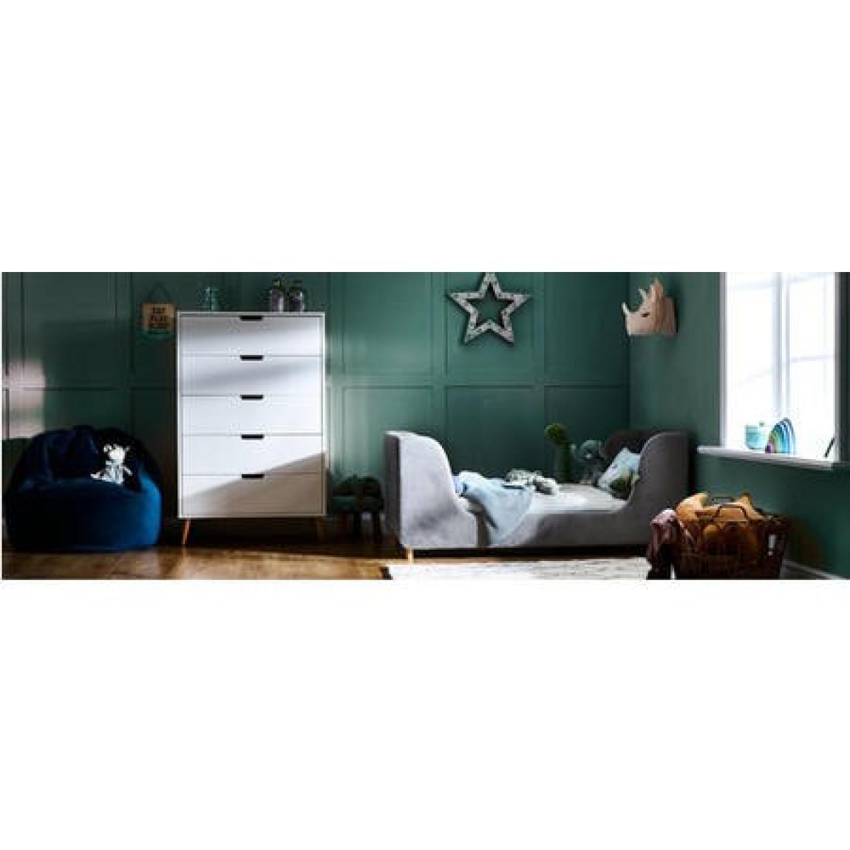 With it's chic design, the Lumi grey velvet Toddler Bed brings a rich, modern feel to your child's bedroom. Featuring a luxurious velvet frame, this boutique-style toddler bed will sit perfectly in any bedroom. Once your toddler has outgrown their cot, the Lumi is there to allow parents the ability to transition gradually should they feel that the move straight into a regular bed is too daunting. Designed with little ones in mind, the Lumi sits low to the ground, protecting them from any worrying bumps and falls.