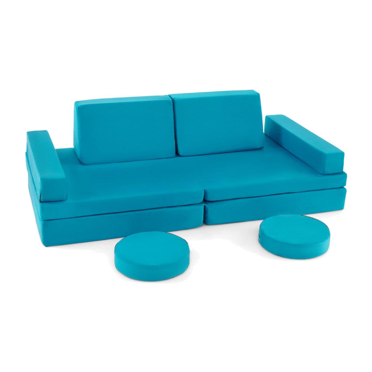 Featuring 2 trapezoidal pillows, 2 rounded cushions, 2 rectangular cushions, a thick folding mat and a thin folding mat, the sofa set offers endless possibilities to stimulate creativity, Imagination, motor skills and logical capability. Plus, these cushions can be easily moved with a practical black fabric handle. Moreover, this 8-piece sofa set offers various free combinations such as sofa, fort, tunnel, bridge, car, tent, slide, bed lounge or anything your kids can imagine.