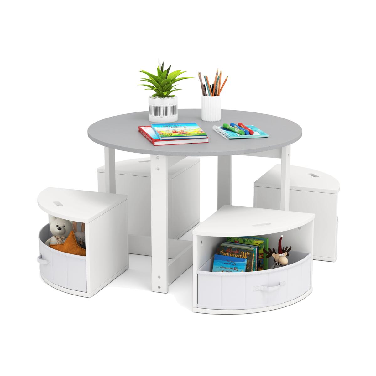 Toddler Nesting Table with 4 Storage Stools - Grey