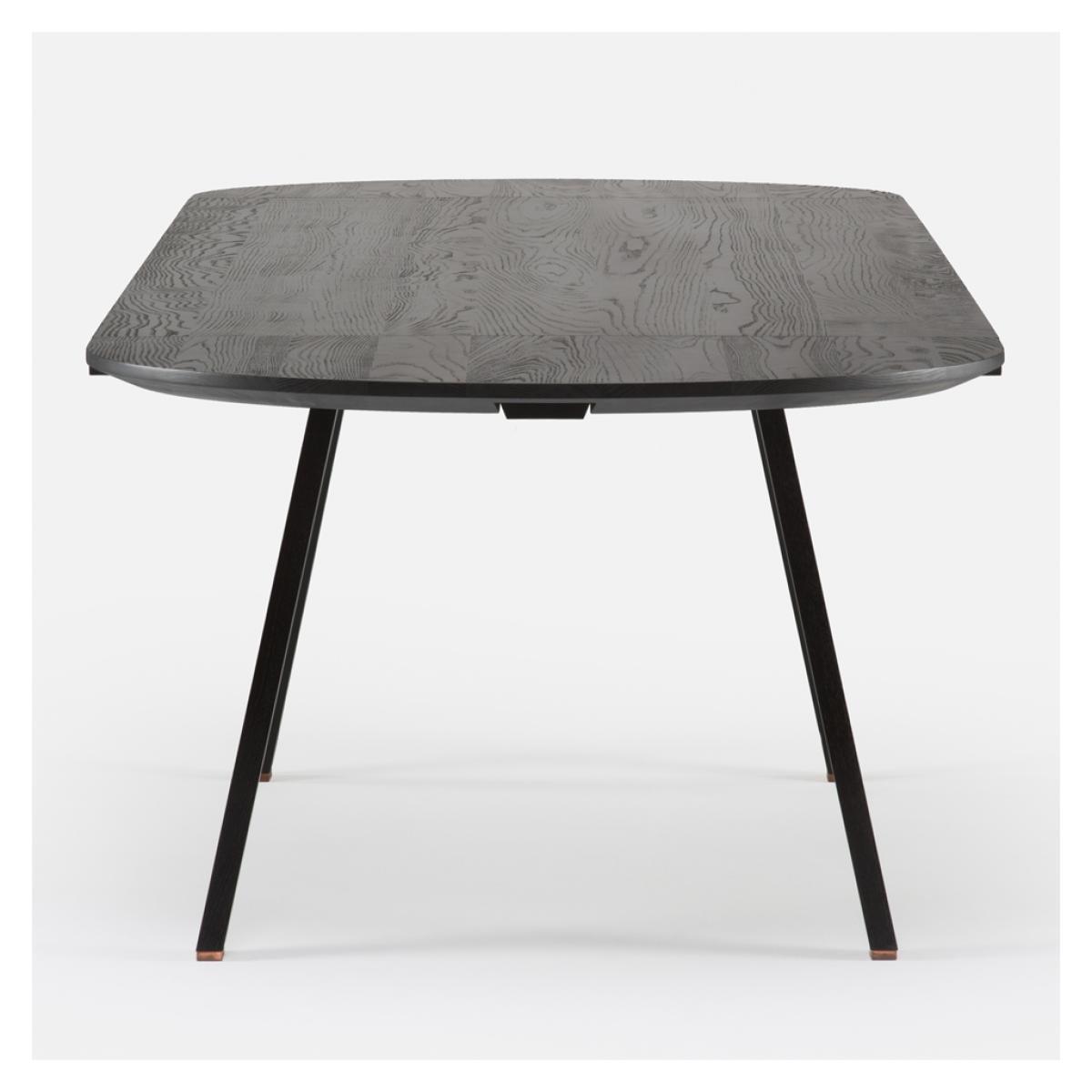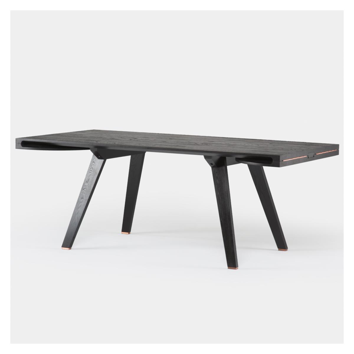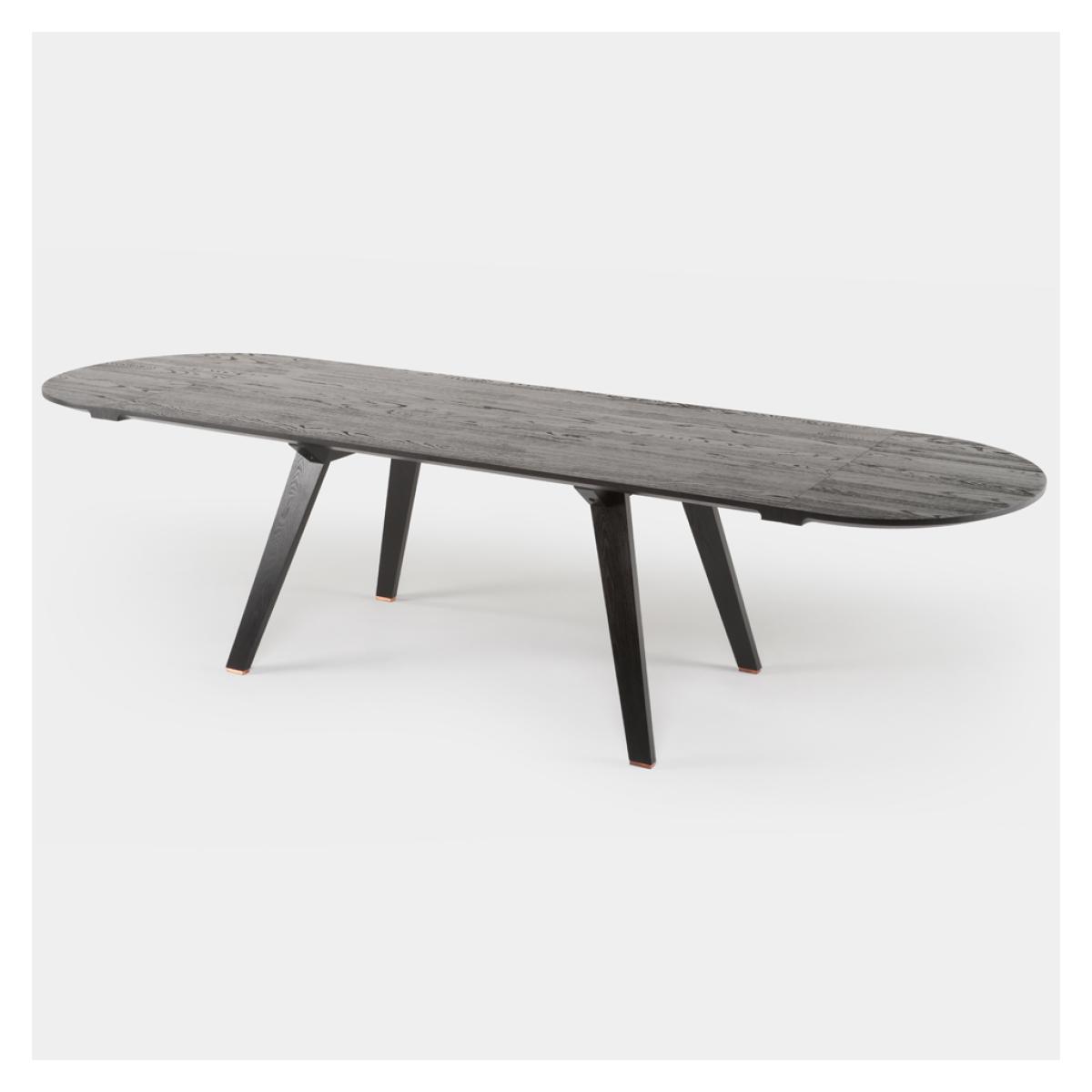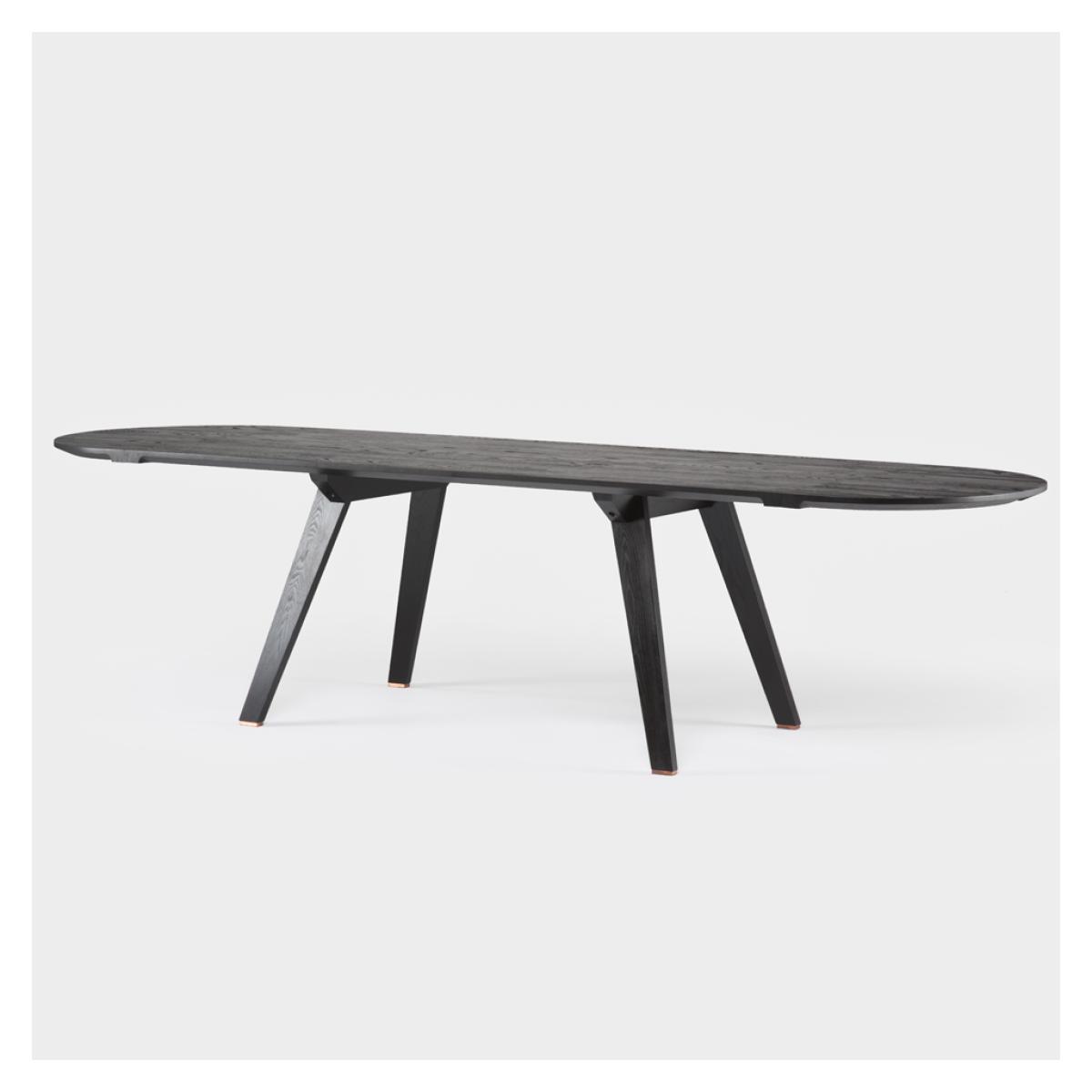 Designed by Ilse Crawford for her innovative design house, Studioilse, this ash Together Extending Table in a black-painted finish is a lesson in stylish versatility. The Ilse Crawford Together Table is formed of beautifully continuous lines of ash wood, with a rich black-painted finish. An intelligent design, the table has two rounded ends that act as drop leaves, creating a rectangular table when locked underneath with its brushed copper mechanisms. Studioilse is renowned for its human approach to design, with this Together Extending Table making up part of the brand’s ‘Seating for Eating’ series, designed with the intention of bringing people together. Manufactured by De La Espada, this black ash Together Extending Table by Ilse Crawford would make a wonderful addition to your interior and is perfect for everyday dining, or easily adaptable for spontaneous dinner parties.