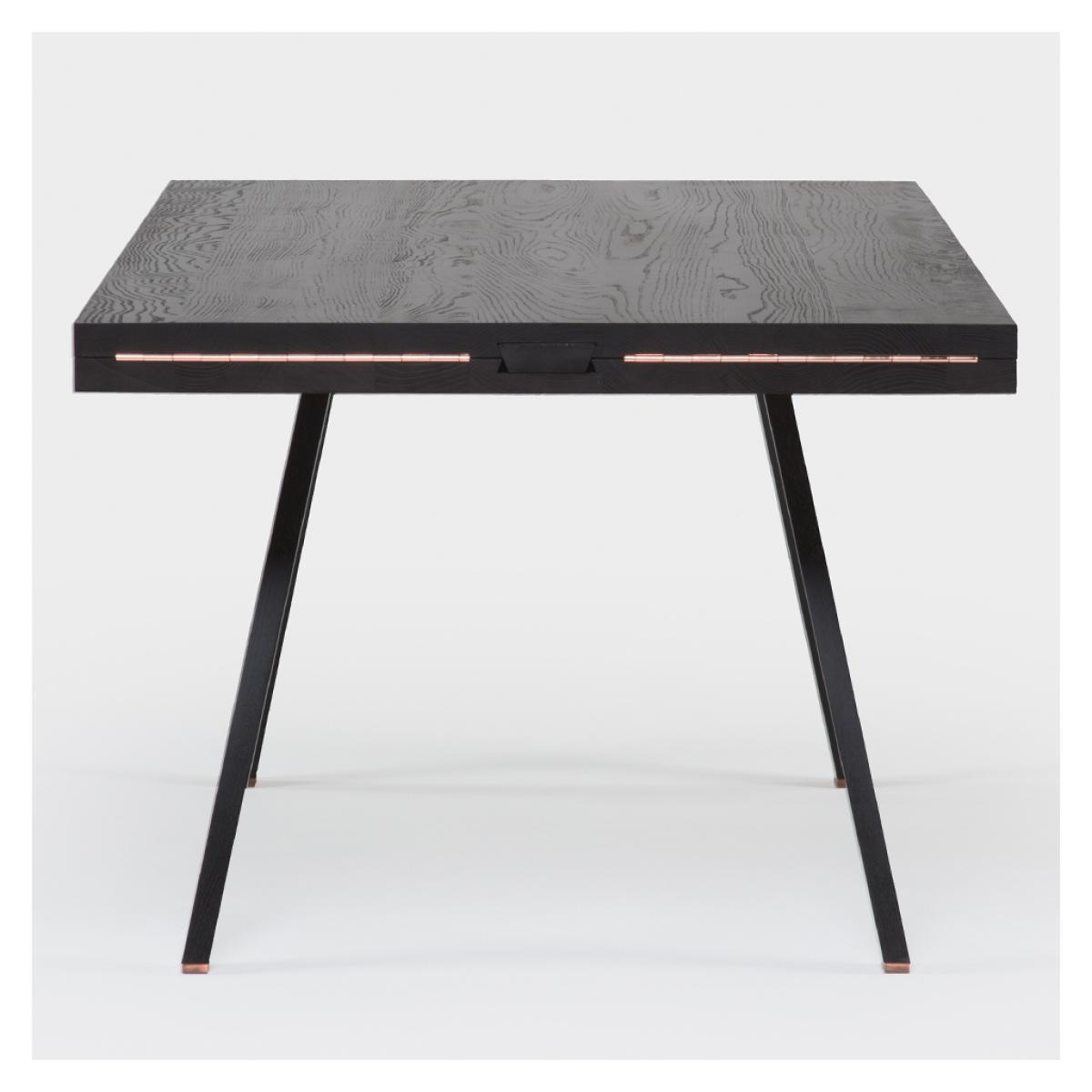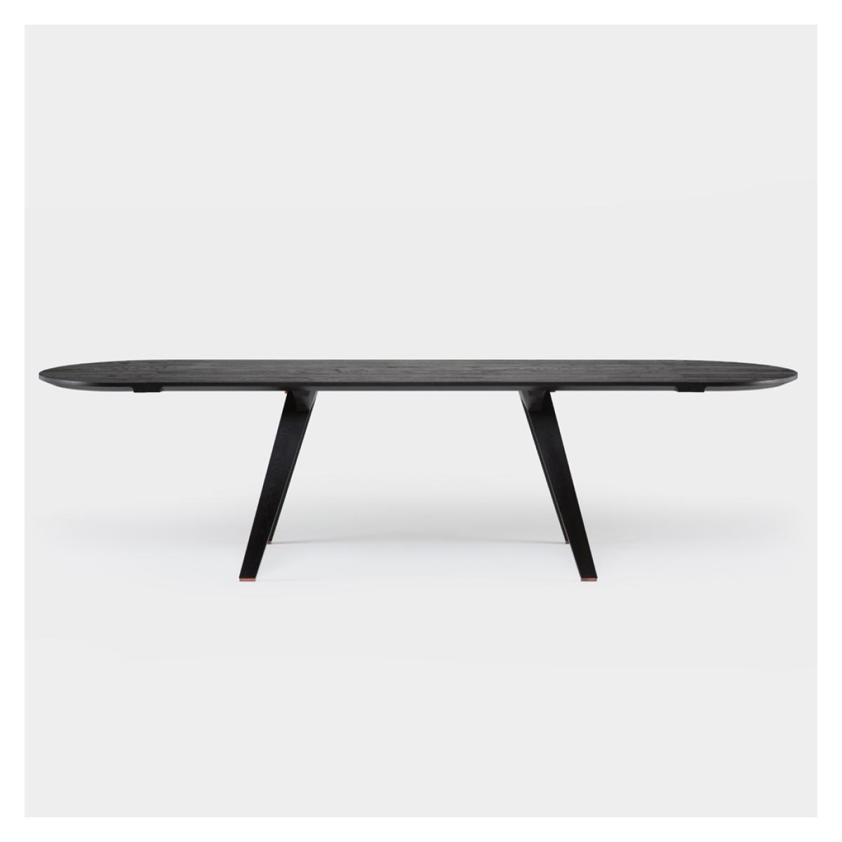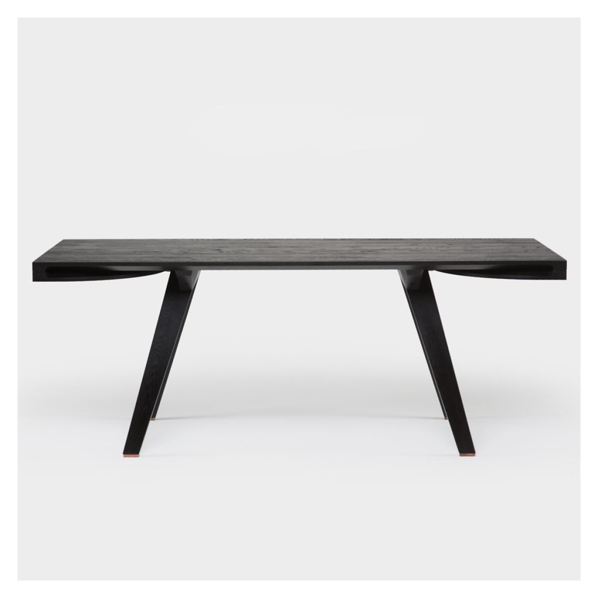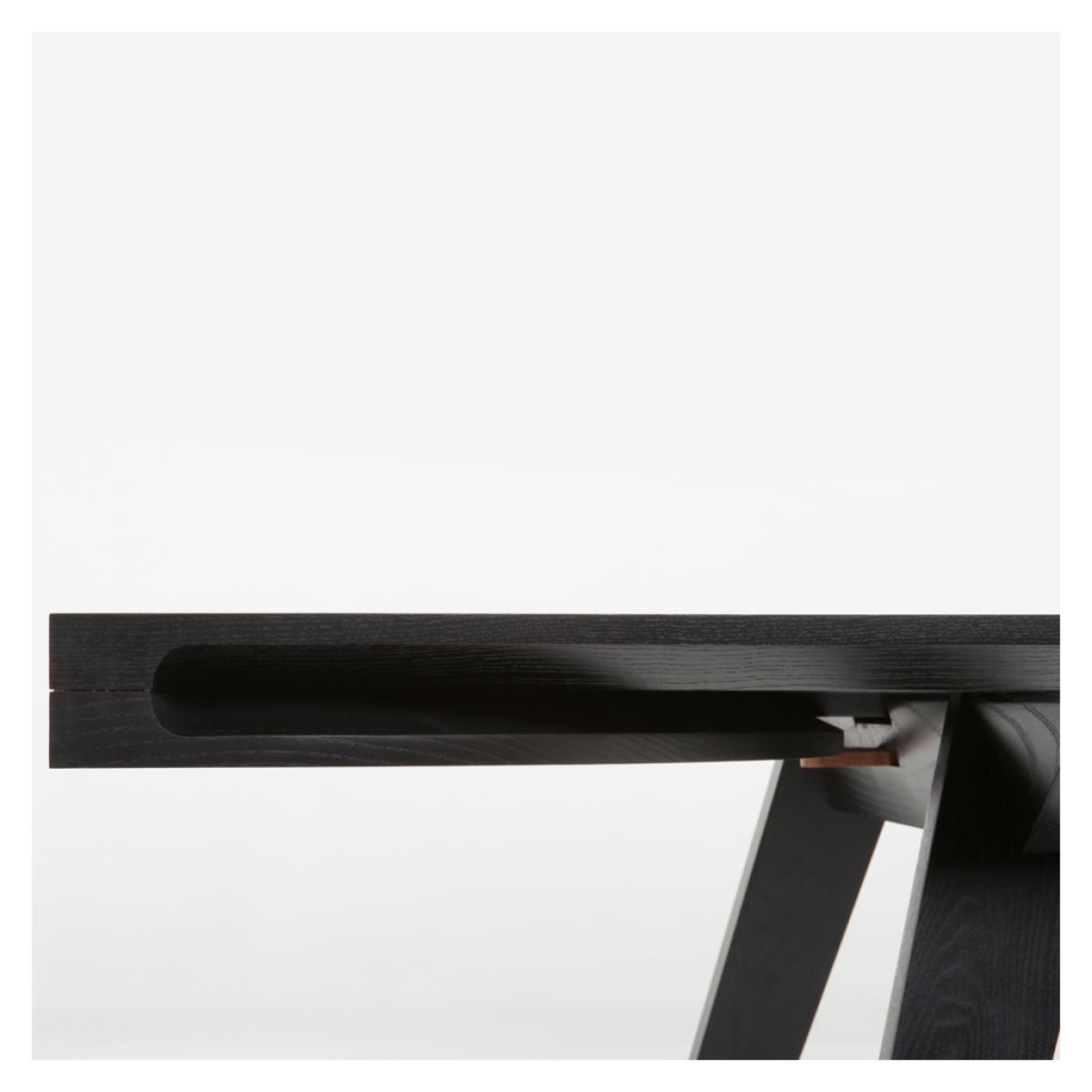 Designed by Ilse Crawford for her innovative design house, Studioilse, this ash Together Extending Table in a black-painted finish is a lesson in stylish versatility. The Ilse Crawford Together Table is formed of beautifully continuous lines of ash wood, with a rich black-painted finish. An intelligent design, the table has two rounded ends that act as drop leaves, creating a rectangular table when locked underneath with its brushed copper mechanisms. Studioilse is renowned for its human approach to design, with this Together Extending Table making up part of the brand’s ‘Seating for Eating’ series, designed with the intention of bringing people together. Manufactured by De La Espada, this black ash Together Extending Table by Ilse Crawford would make a wonderful addition to your interior and is perfect for everyday dining, or easily adaptable for spontaneous dinner parties.