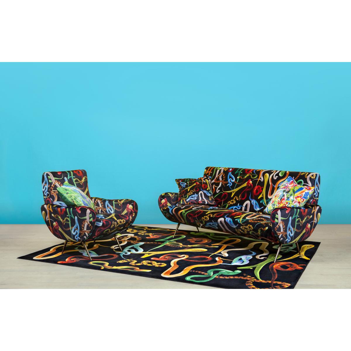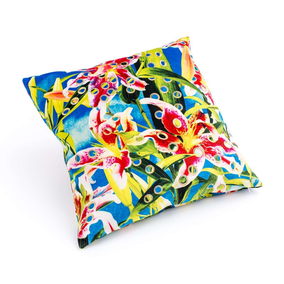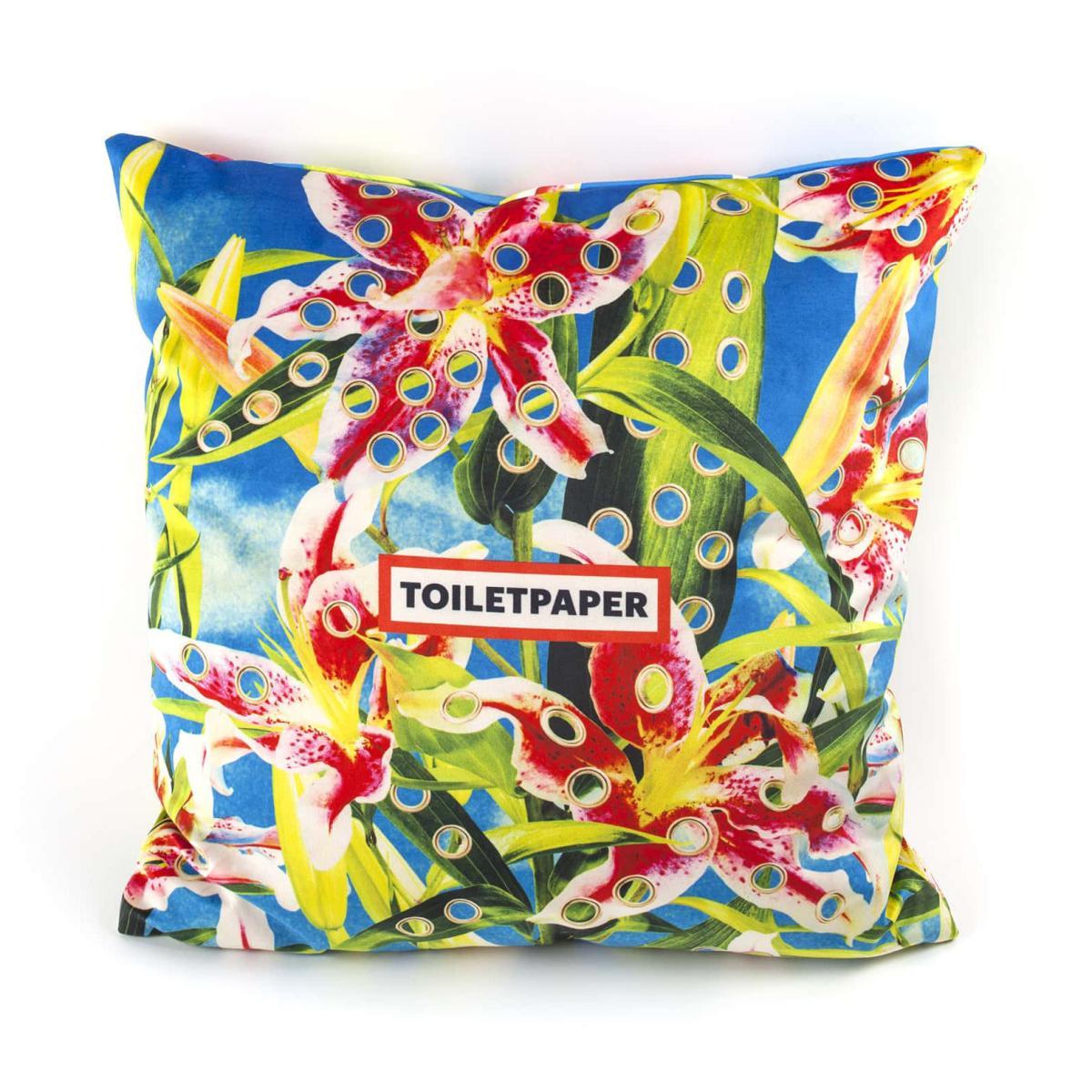 It is Maurizio Cattelan, an inescapable figure of contemporary art, and photographer Pierpaolo Ferrari who created this capsule collection for Seletti. Unlike any other, it is provocative, amusing, absurd and eccentric all at once. The items in the collection are decorated with surrealist images taken from the Toilet Paper magazine, founded in 2010 by two Italian artists. Perfectly manicured cut-off fingers, soap with a bite taken out of it, fish stuffed with precious gems, a canary with a cut-off wing, and more. Dreamlike Toilet Paper motifs tinted with black humour inspired by the worlds of fashion and advertising, combining commercial photography, twisted visual narratives and surreal imagery. Toilet Paper questions our contemporary obsession for images, explores our most unspeakable desires and urges. All the items in the Toilet Paper collection present startling scenes, mixing disturbing normality and troubling ambiguity, stirring feelings of horror combined with visual pleasure. A work of art in itself, the Toilet Paper collection questions, due to its accessible price and wide distribution, the nature and limits of the contemporary art market. This question has always been central to Maurizio Cattelan's work. A bold graphic display highlighted with bright and contrasting colours, one thing is for sure – these Toiletpaper cushions will attract everyone's attention! With their velvet covering with intense colours and their down padding, these cushions offer incomparable comfort.