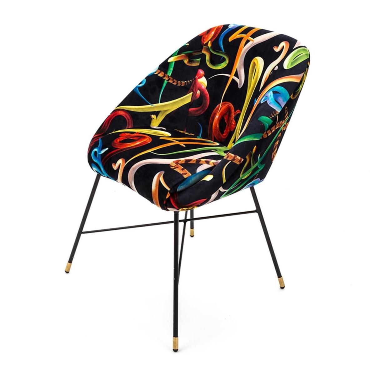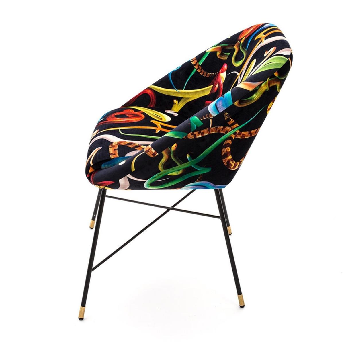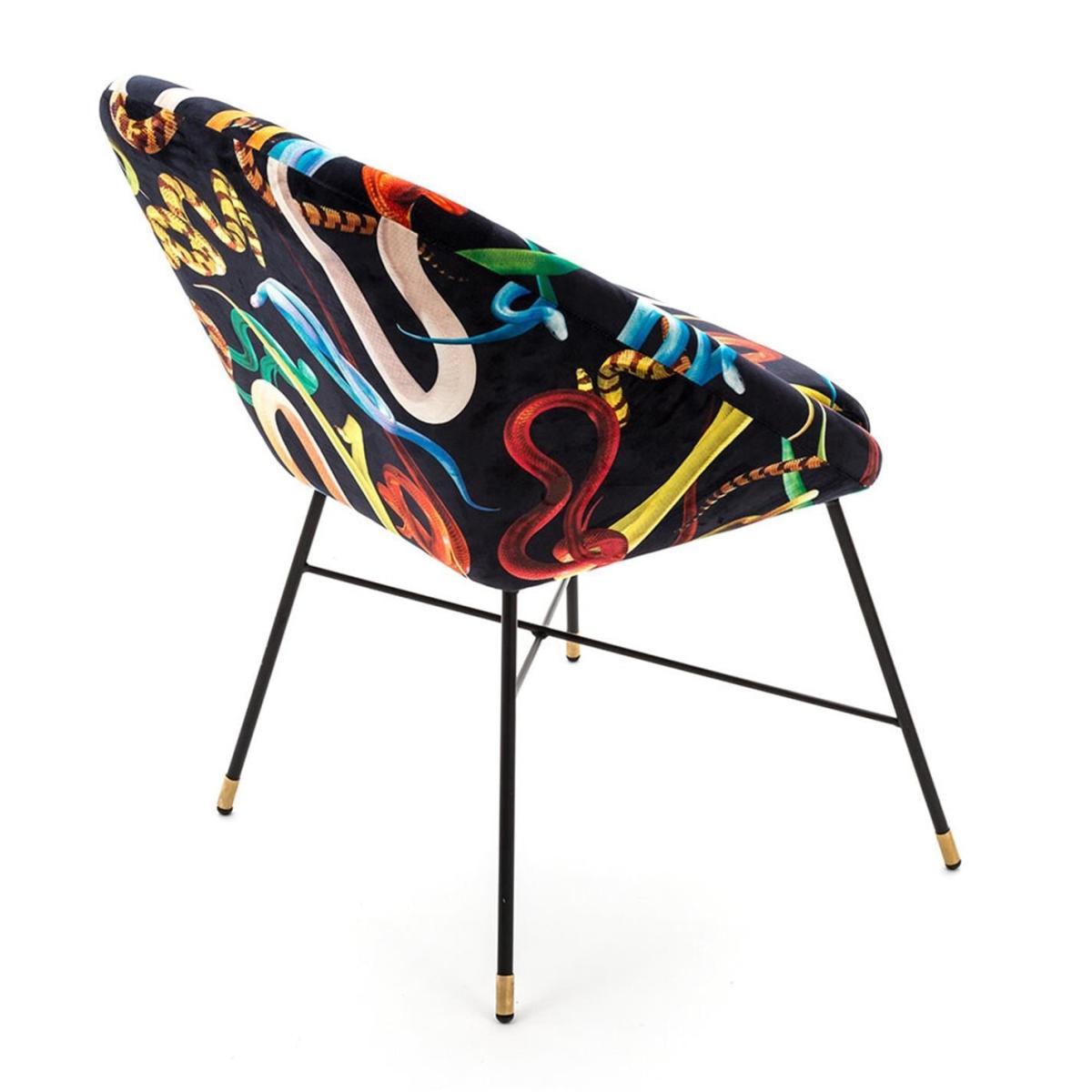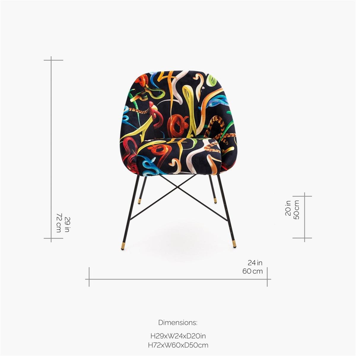 The ultimate accent chair. Big, bold and beautiful, this upholstered chair from Seletti wears Toiletpaper is sure to make a big impression. Inspired by traditional 1950s furniture, Seletti wears Toiletpaper has turned this classic style on its head with unexpected lining and surreal images. A wonderfully quirky addition to any living room, bedroom or reading nook.