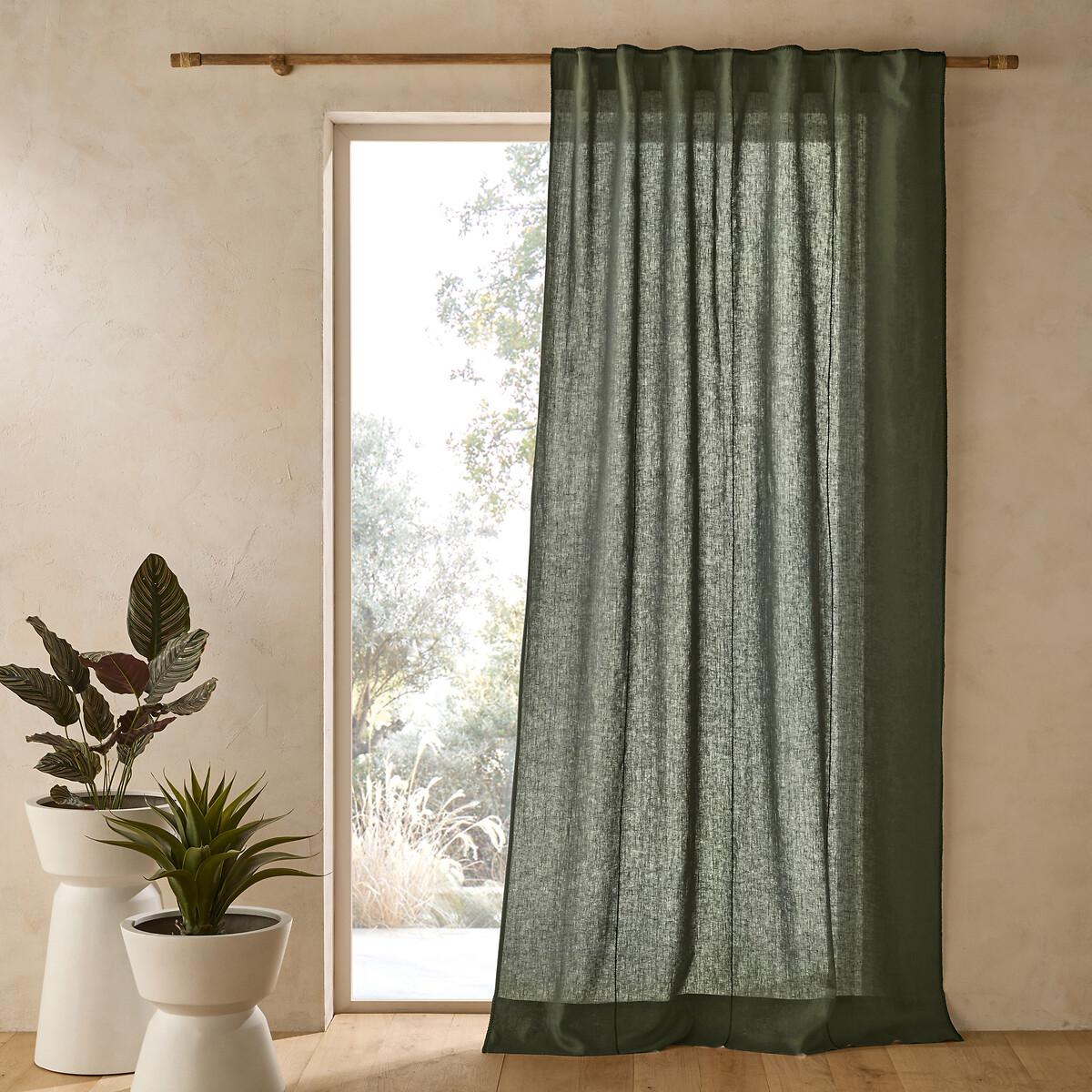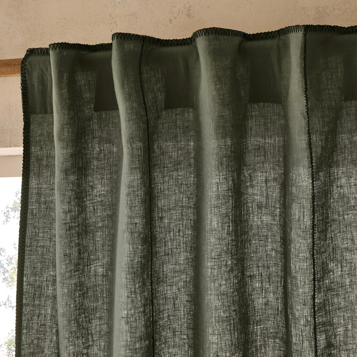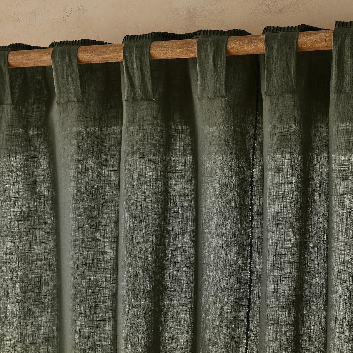 The Tojos washed linen curtain. Appreciated for its authenticity, linen becomes more beautiful and softer with every wash.. Product Details • 100% pre-washed linen • Contrasting overlapping stitched trim • Rod pocket finish, hidden tabs Care Advice • Do not bleach • Machine washable at 30°C on a delicate cycle • Do not dry clean • Iron at low temperature • Do not tumble dry. Sizes • Width 140 x Drop 180cm • Width 140 x Drop 220cm • Width 140 x Drop 260cm • Width 140 x Drop 350cm