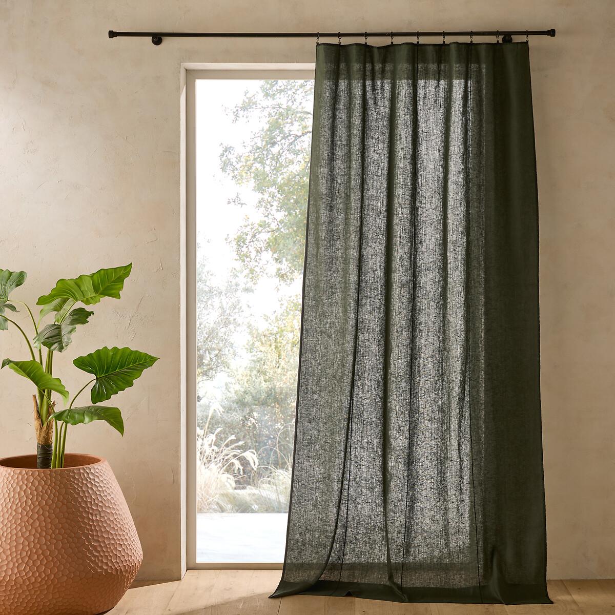 The Tojos washed linen curtain. Appreciated for its authenticity, linen becomes more beautiful and softer with every wash.. Product Details • 100% washed linen, 215gsm • Finish: contrasting blanket stitch • Hang with the Loch curtain clips sold on the website. Care Advice Follow our care tips to maintain the quality of your product • Wash at 30°C • Do not bleach • Do not tumble dry • Iron at low temperature (max. 110°)Dimensions • Width 140 x Drop 180cm • Width 140 x Drop 220cm • Width 140 x Drop 260cm • Width 140 x Drop 320cm • Width 140 x Drop 350cm • Width 280 x Drop 350cm • OEKO-TEX® Standard 100. Standard 100 certification by OEKO-TEX® tests textile products for harmful substances via an independent, international label.