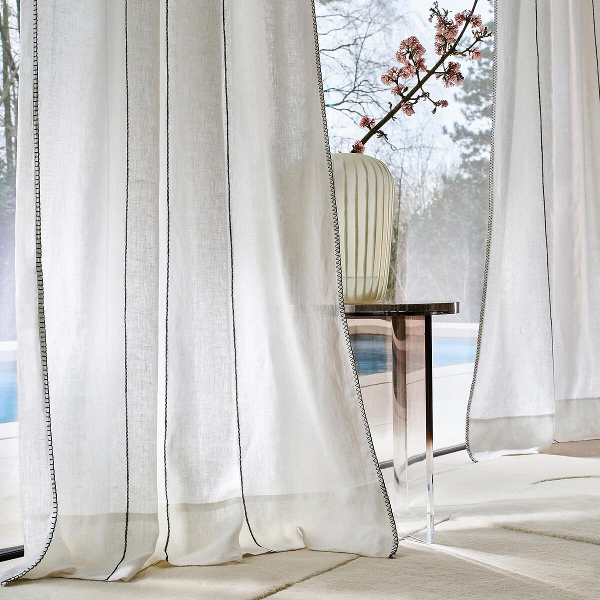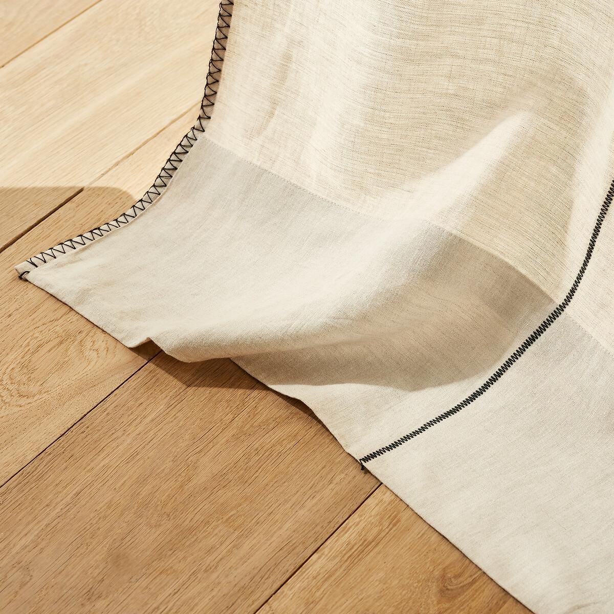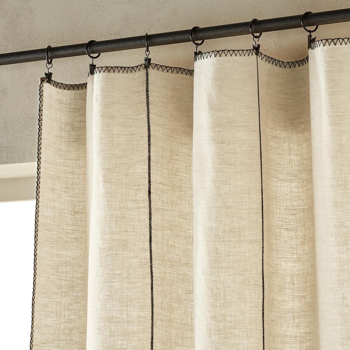 The Tojos washed linen curtain. Appreciated for its authenticity, linen becomes more beautiful and softer with every wash.. Product Details • 100% washed linen, 215gsm • Finish: contrasting blanket stitch • Hang with the Loch curtain clips sold on the website. Care Advice Follow our care tips to maintain the quality of your product • Wash at 30°C • Do not bleach • Do not tumble dry • Iron at low temperature (max. 110°)Dimensions • Width 140 x Drop 180cm • Width 140 x Drop 220cm • Width 140 x Drop 260cm • Width 140 x Drop 320cm • Width 140 x Drop 350cm • Width 280 x Drop 350cm • OEKO-TEX® Standard 100. Standard 100 certification by OEKO-TEX® tests textile products for harmful substances via an independent, international label.