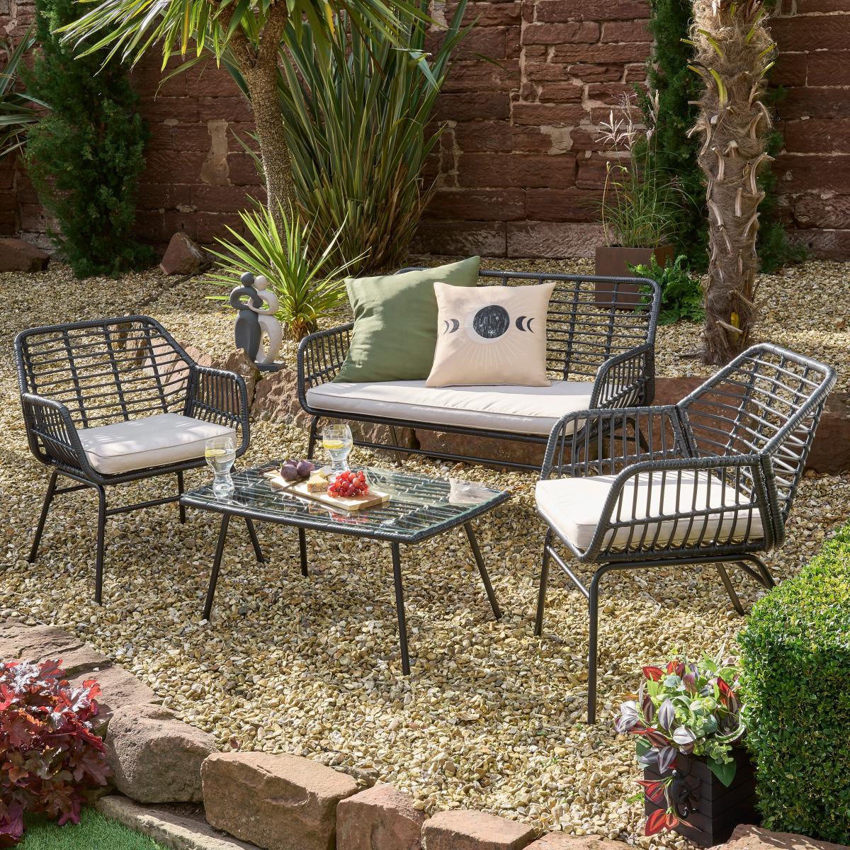I love this Toko 4 Seater conversation set for its sleek black finish, which lends a modern, versatile look that works well in both contemporary and coastal garden spaces. It’s practical too, with lightweight yet sturdy frames, making it both functional and stylish. In terms of styling tips, it pairs beautifully with natural textures like rattan or wicker accessories, or pops of colour through cushions and outdoor rugs to add personality. It's perfect for creating an inviting outdoor lounge, whether for relaxed drinks or family gatherings, and its neutral palette ensures it can complement a range of garden designs.