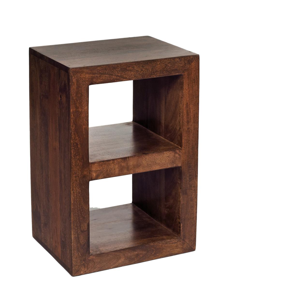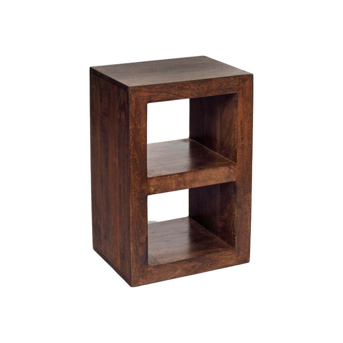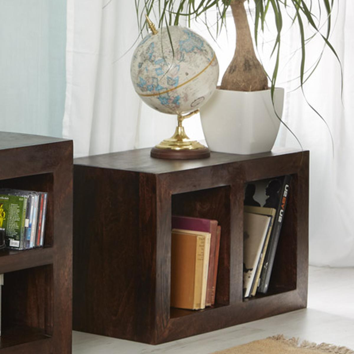 Made from 100% Solid Mango Hardwood. Hand Crafted from Eco-Friendly Wood. Deep Walnut Colour, No Assembly Required. The Indian Cube 2 hole shelving unit creates endless storage possibilities and can be used for a number of simple yet effective purposes. Handcrafted from mango wood, a fast-growing Indian Hardwood, the Cube 2 hole shelving unit could even be attached to the wall.