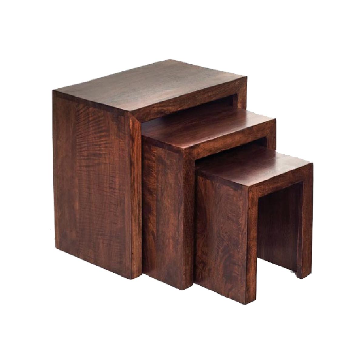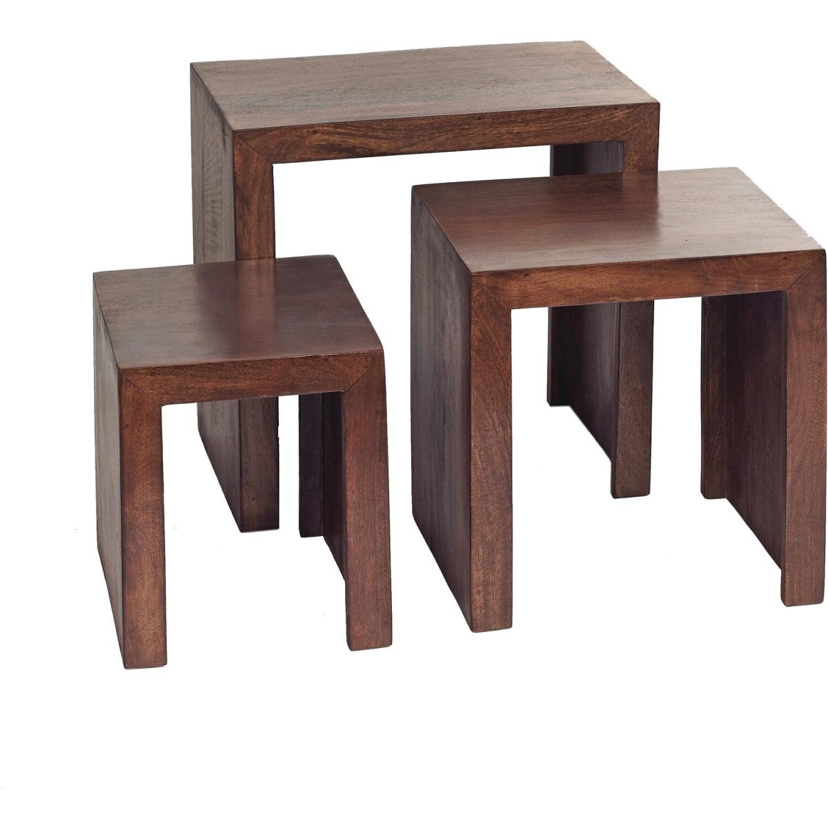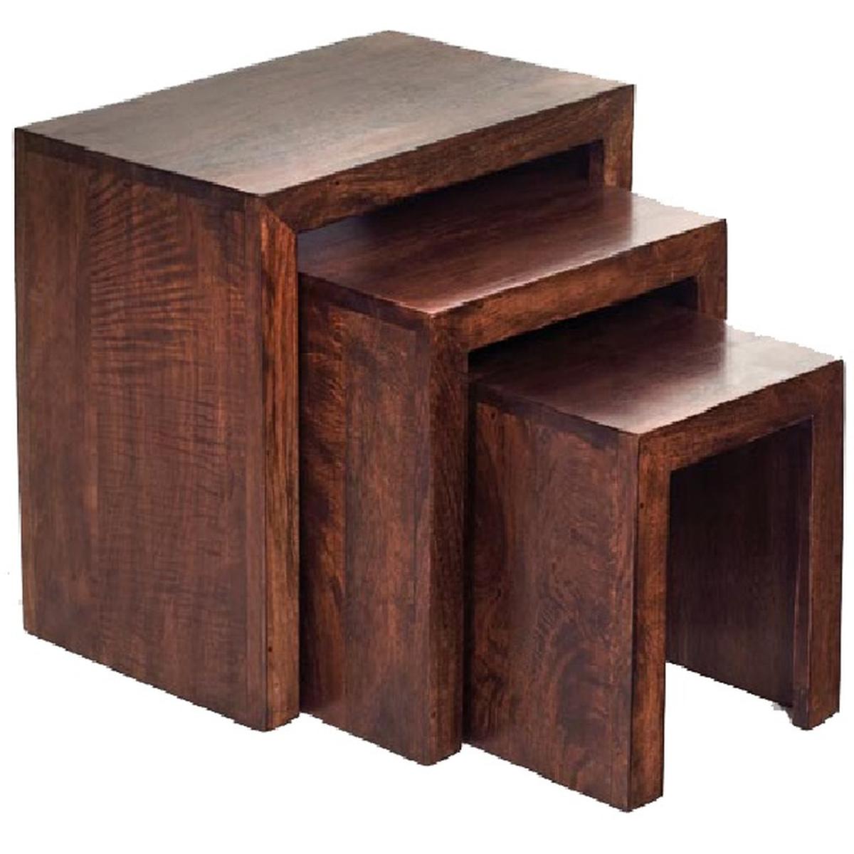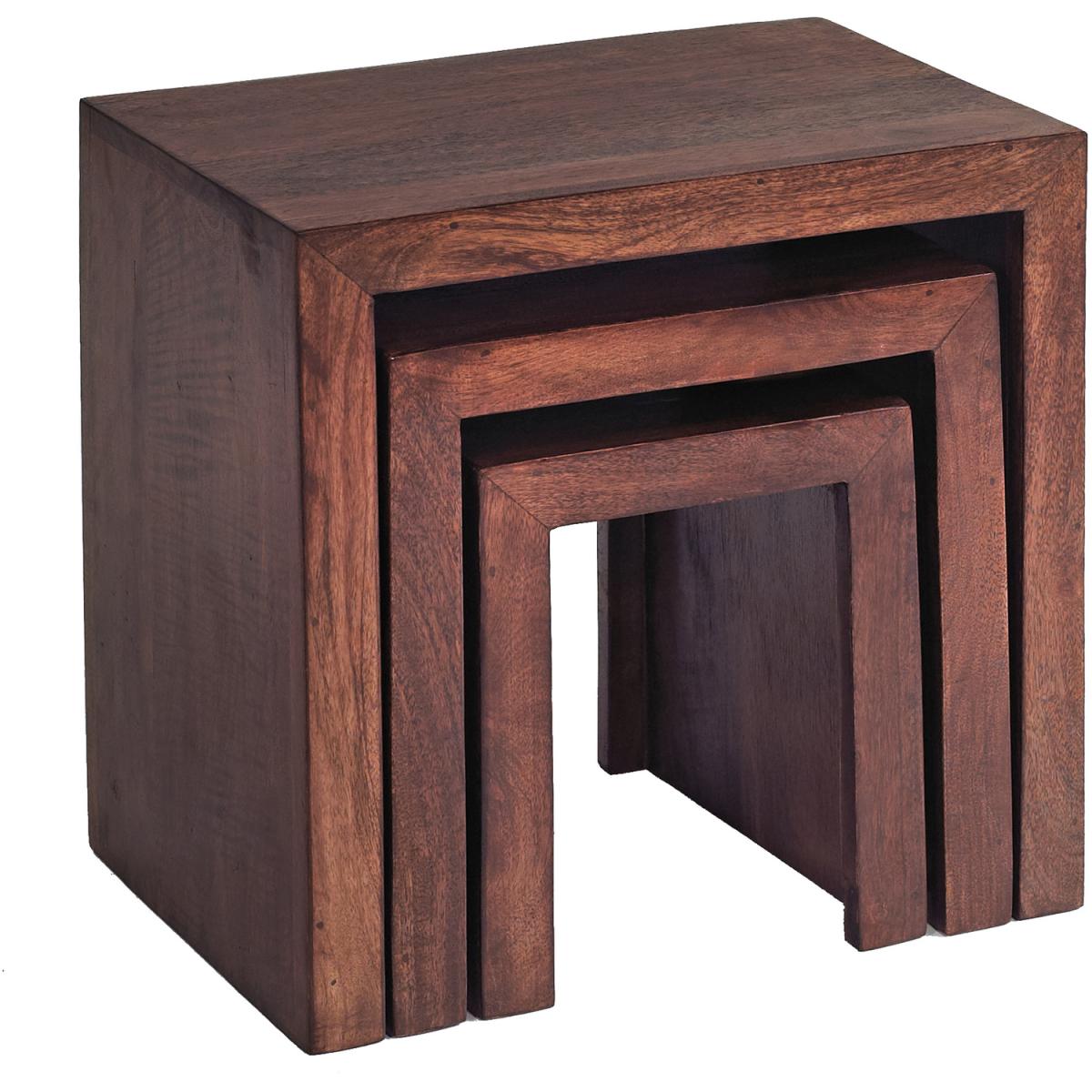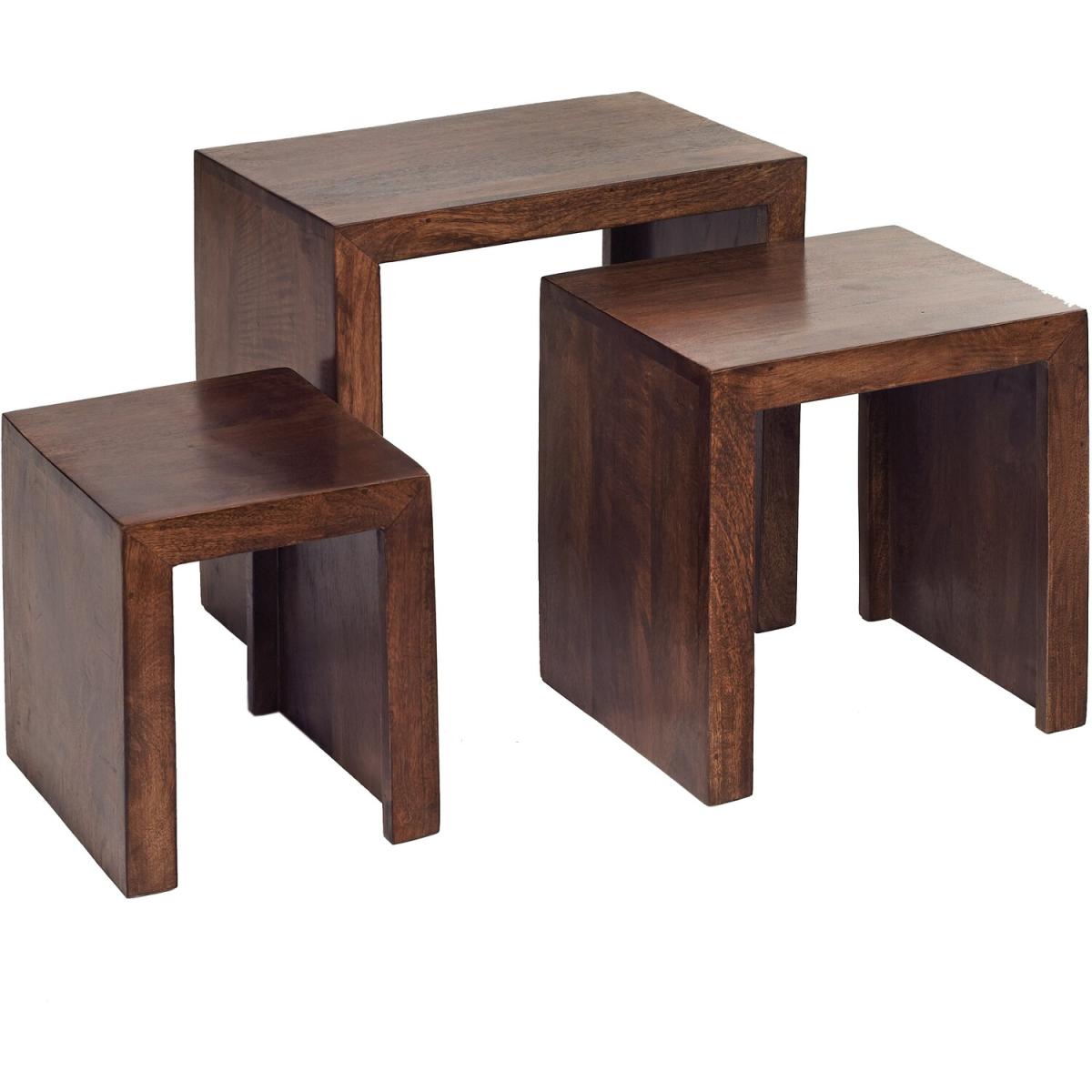 Toko Dark Mango Wood Furniture Nest of 3 Tables in Walnut - Dark Walnut
