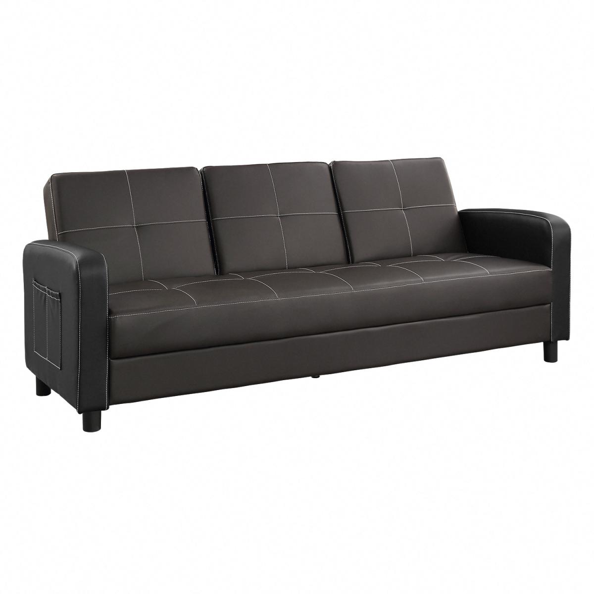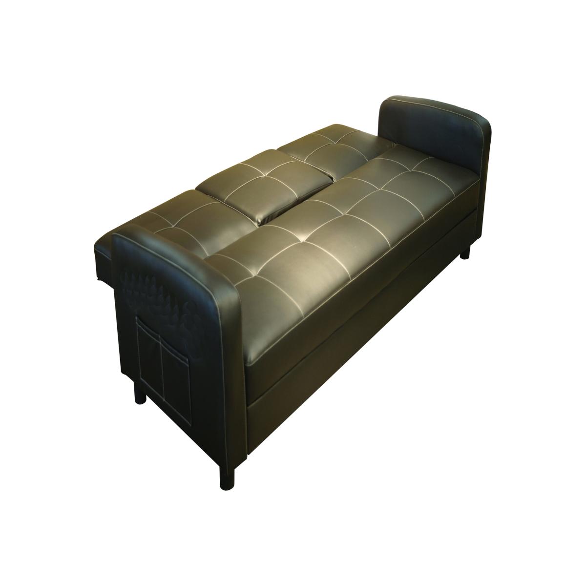 Introducing TOKYO a 3 seater faux leather sofa bed, available in brown or black faux leather and also an ash grey with brown contrast. It has amazing functionality as it comes with a pull-down cup holder tray hidden in the centre backrest cushion and also extra storage in a pocket located on either side of the armrest. TOKYO has a convertible design as it has a simple clic-clac mechanism that allows it to swiftly and simply transform from a sofa to a recliner to a bed, making it ideal for overnight guests. This sofa bed cannot be freely positioned in your room. The back of the sofa bed is upholstered in a black woven fabric that does not match the colour of the sofa bed fabric.. You might need to screw the legs to the underside of some of our sofa beds since they don't all have pre-drilled holes. All of our sofa beds come with easy-to-follow assembly instructions. Delivered by our friendly couriers on a 2-man delivery service within 3-7 working days. The courier will deliver to a room of your choice.
