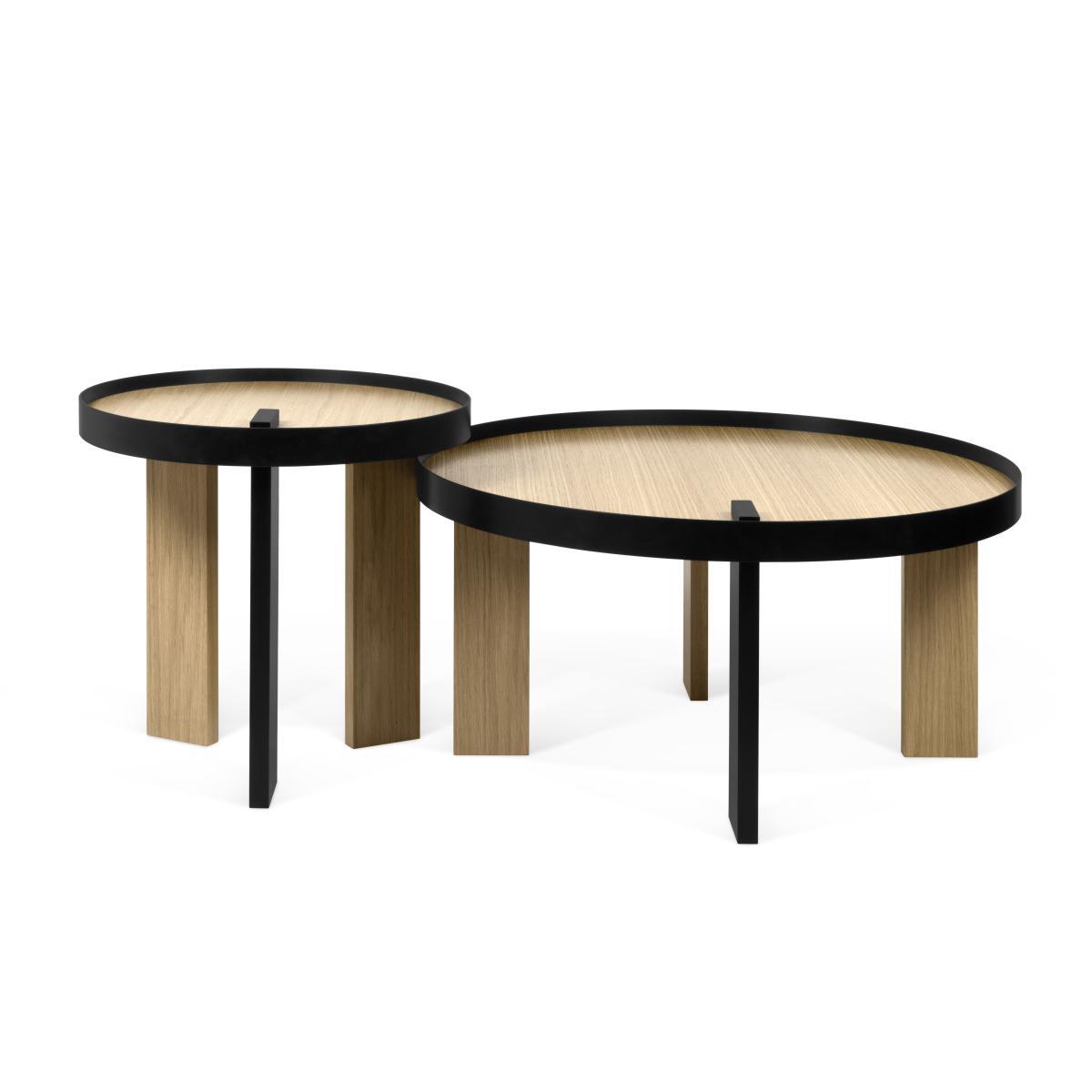Japanese inspiration for this table that offers an original mix of materials and colours. The warm silhouette in light wood is punctuated by black metal elements with an industrial feel. You’ll love the ultra-graphic contemporary effect of the metal that runs across the top. The projecting frame circles the top, preventing objects from falling off. The eye soaks up these black, minimalist lines for a sober, relaxing visual effect, close to the Zen spirit of Japanese furniture.