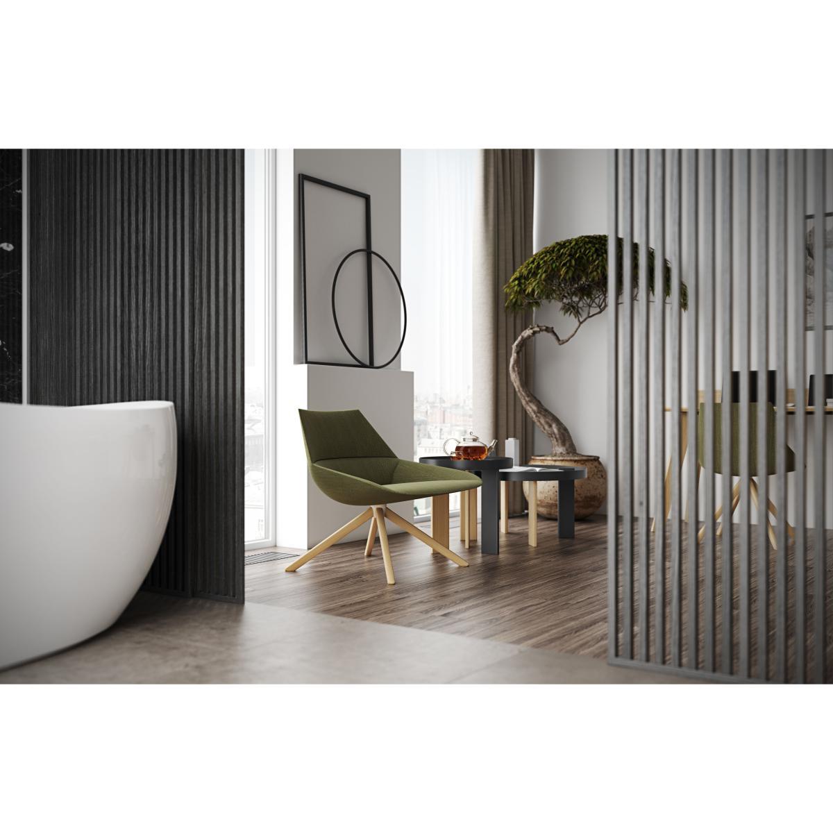 This coffee table is a great example of modern Scandinavian-inspired design, combining natural wood with simple, clean lines. I love its versatility - it works well in both minimalist and contemporary interiors, adding warmth without feeling bulky. Its round shape encourages a more relaxed, sociable setting, ideal for smaller spaces or open-plan living. For styling, consider pairing it with layered textiles and subtle accessories to highlight the natural wood grain and black edges. It pairs nicely with neutral tones, but adding a pop of colour through accessories or upholstery can make it really stand out. Practical tip: its compact size makes it perfect for cozy corners or as a statement piece in a multi-function space.