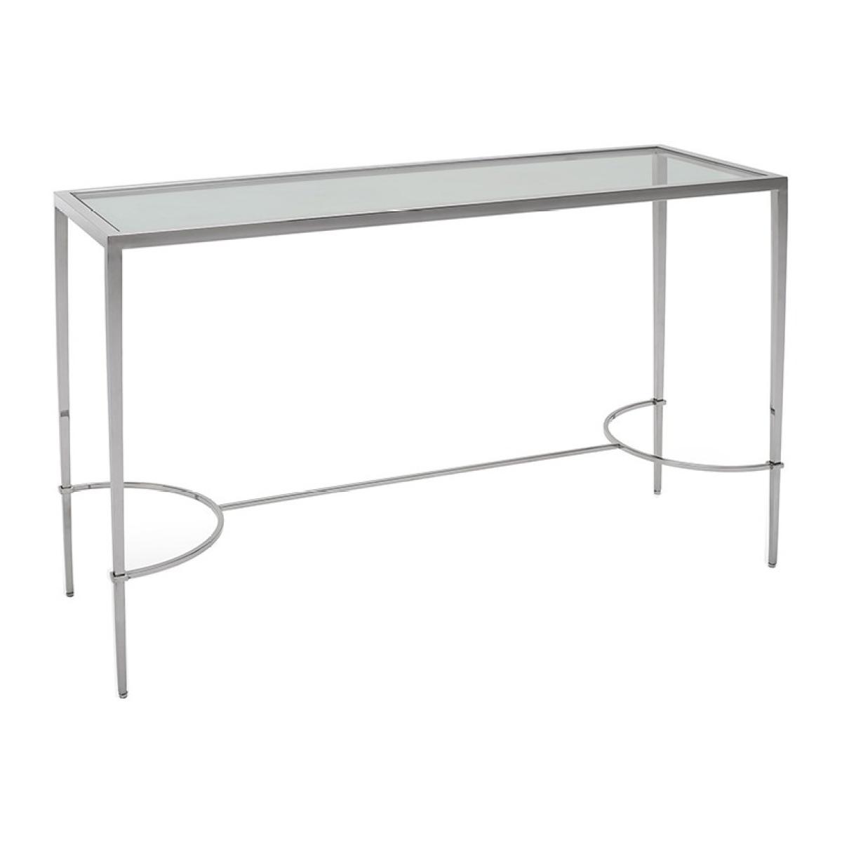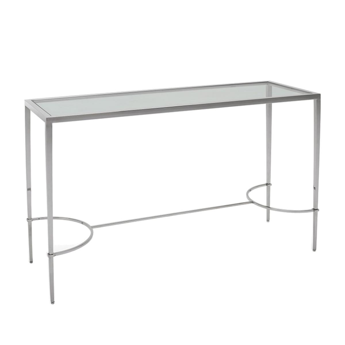 Refined and contemporary, the Tokyo Console Table brings a sleek, architectural presence to any space. Its streamlined silhouette and balanced proportions make it ideal for hallways, entryways, or behind a sofa. Whether styled with decorative accents, a statement lamp, or left minimal, the Tokyo adds effortless sophistication without overpowering the room. Crafted with clean lines and a modern finish, it’s the perfect blend of form and function — a subtle statement that elevates your everyday spaces. Features: Stainless steel frame. Toughened glass top. Available as Coffee, Lamp and Console table. Dimensions: Height 75.00cm  Width 120.00cm Depth 40.00cm  All screens vary in colour reproduction and whilst every effort has been made to display the colour as accurately as possible it is for guidance only.