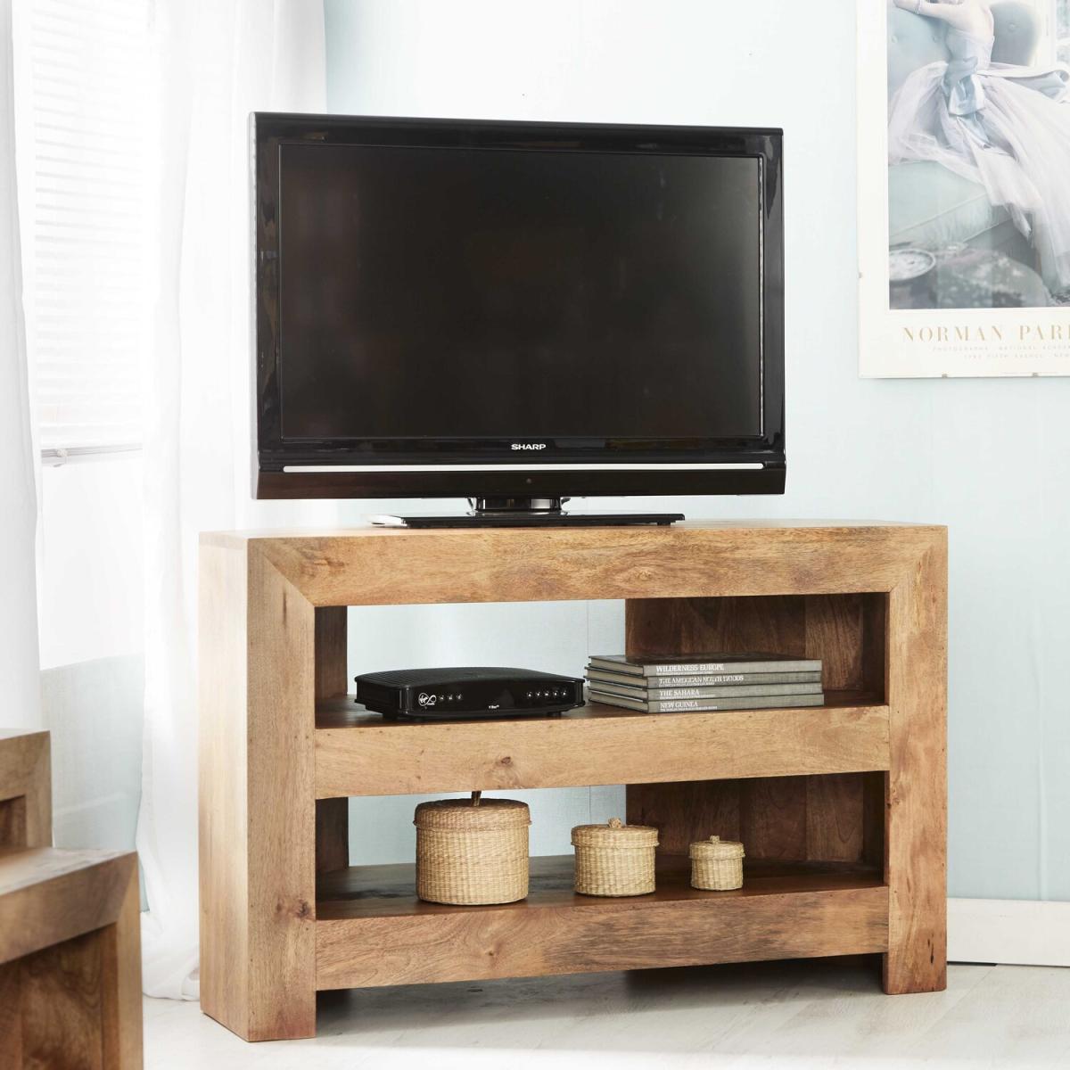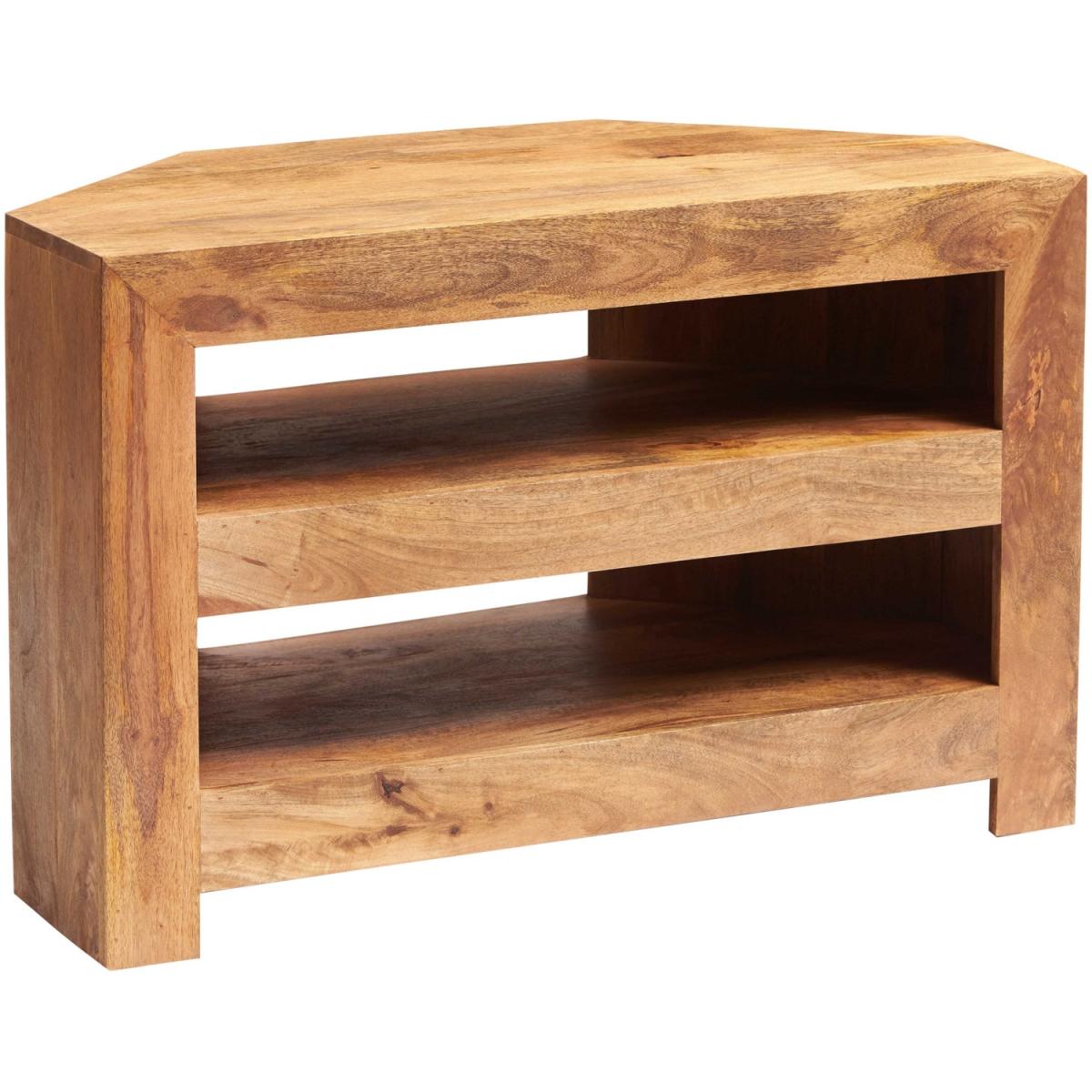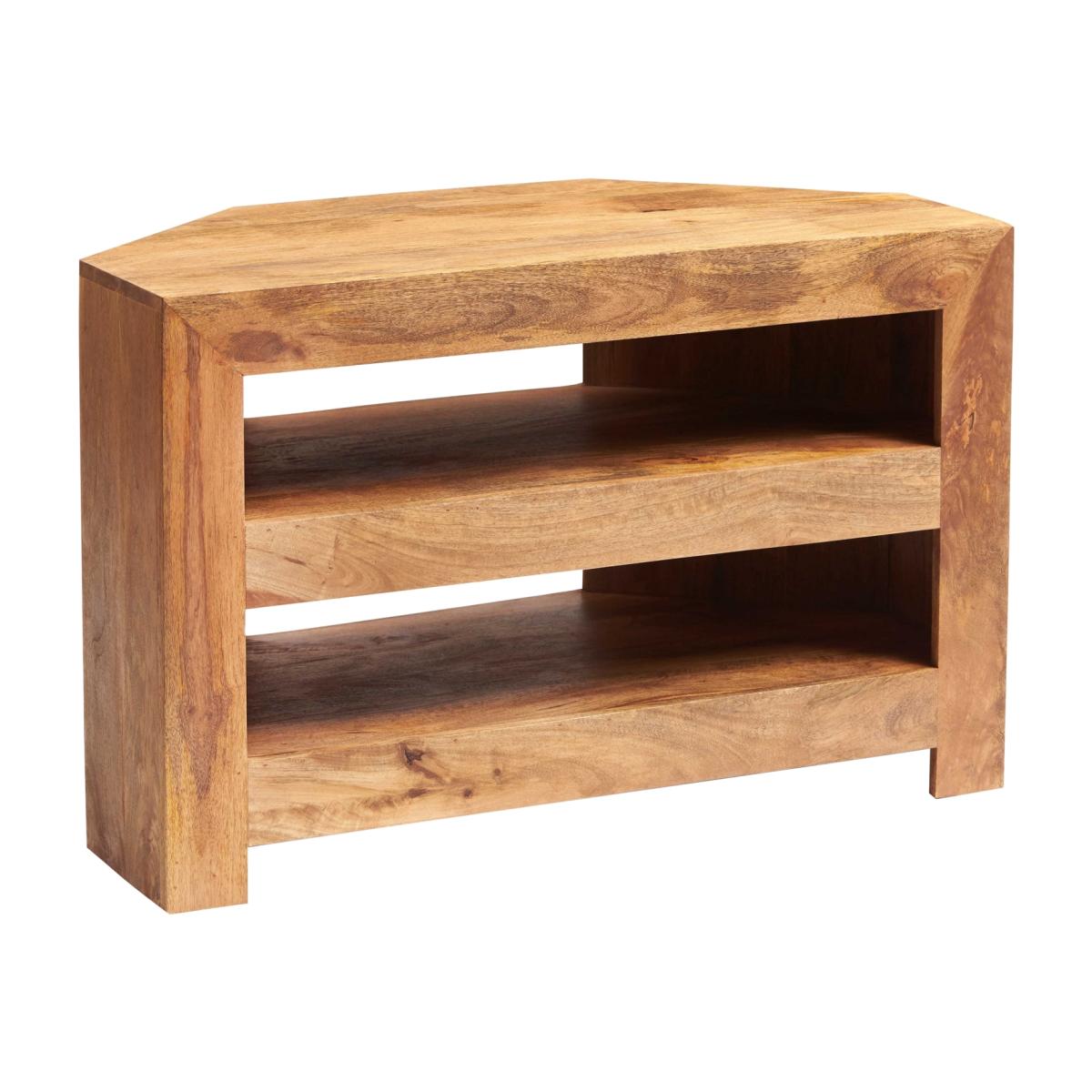 Tokyo Light Mango Wood Open Corner TV Cabinet - Light Wood Tone