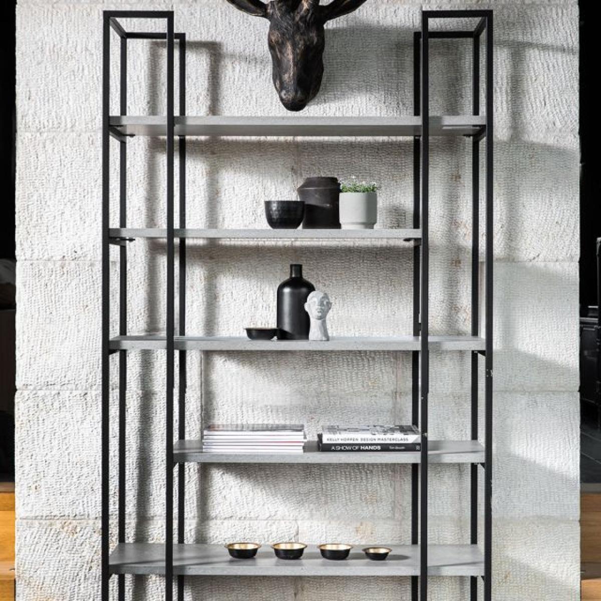 The Toledo Tall Bookcase features five grey offset shelves contained within a black powder coated frame, perfect to place those prize ornaments as well as favourite books. The contemporary industrial look can fit with many home decors. Complete the look and match with other pieces in the Toledo range. Dimensions: H191cm x W110cm x D38cm. Durable, stain resistant shelves. Steel legs. Simple self assembly