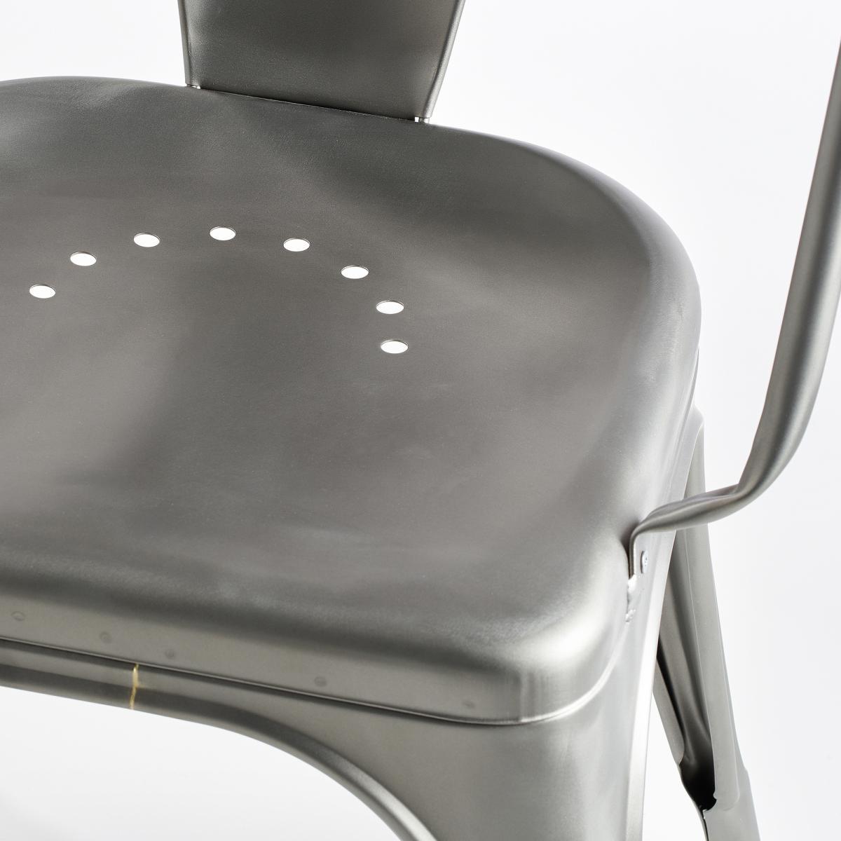 Introducing the genuine "AC16 armchair" from Tolix: Unashamedly industrial, its untreated steel composition gives it unrivalled strength and durability! Easy to store, these chairs are built to stack!