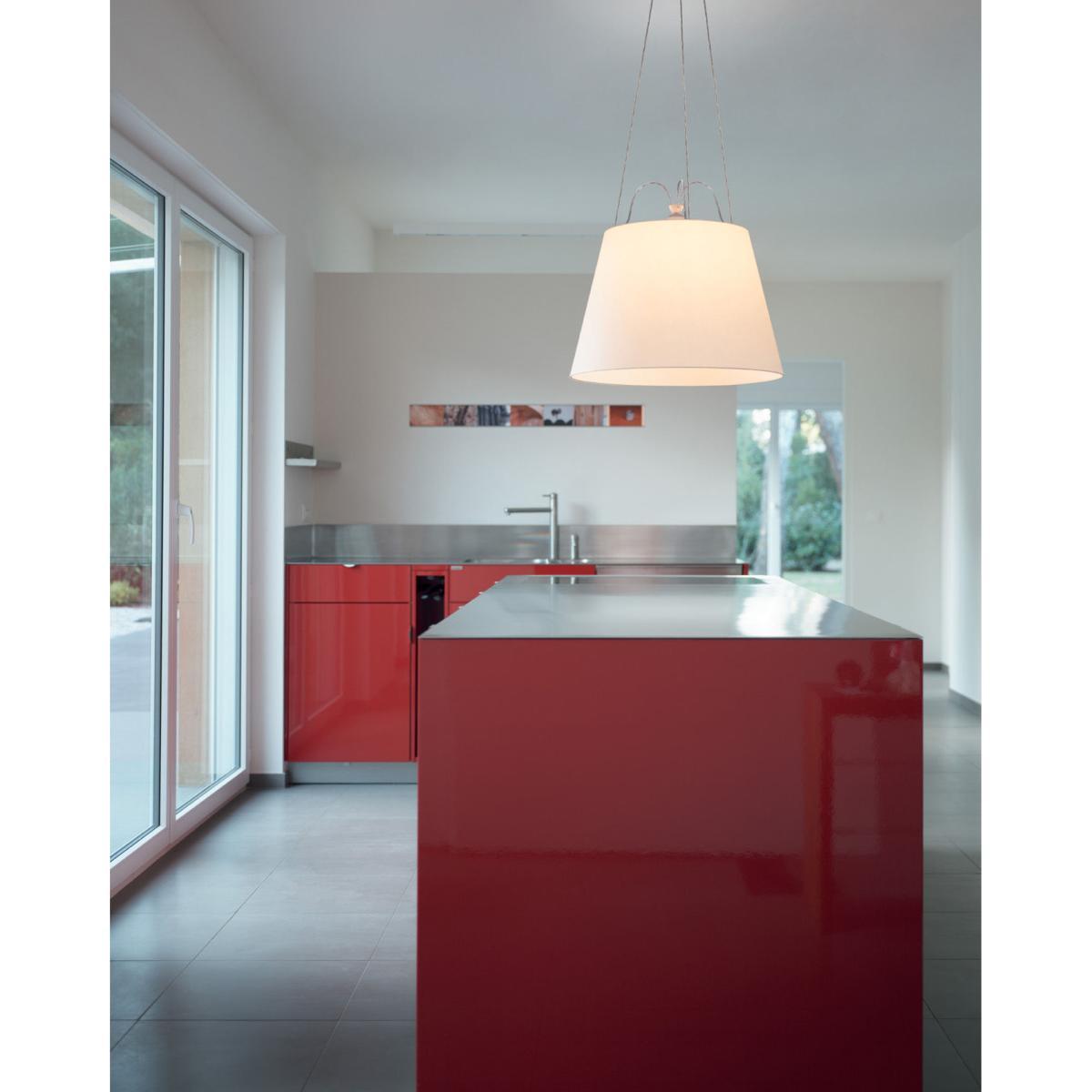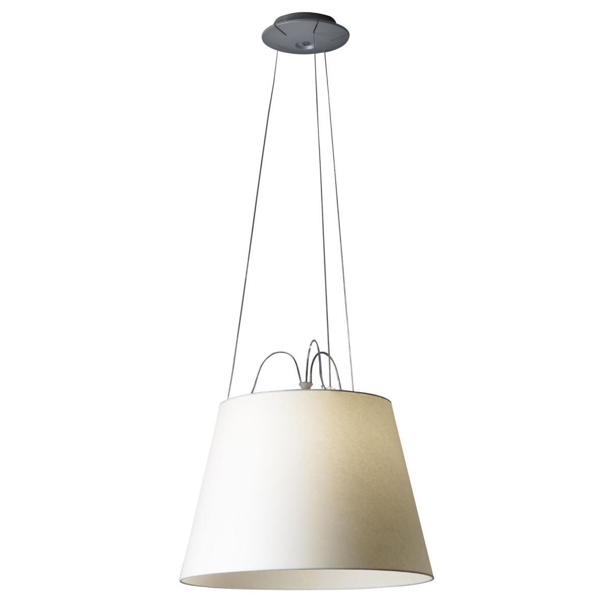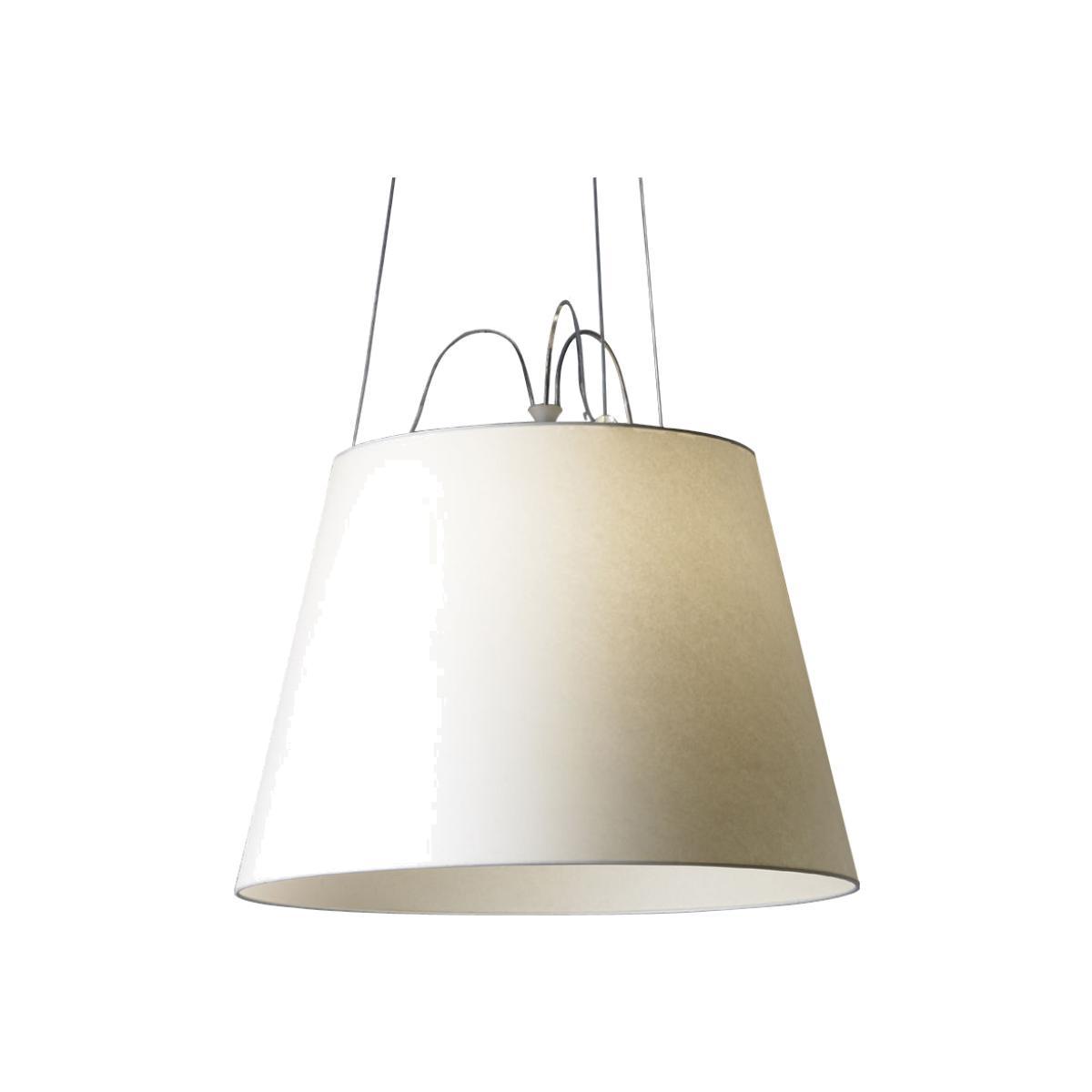 Suspension lamp, extending the range of the Tolomeo Mega series. Available with diffusers with 42 and 52cm diameter. The suspension cables are also feed cables.