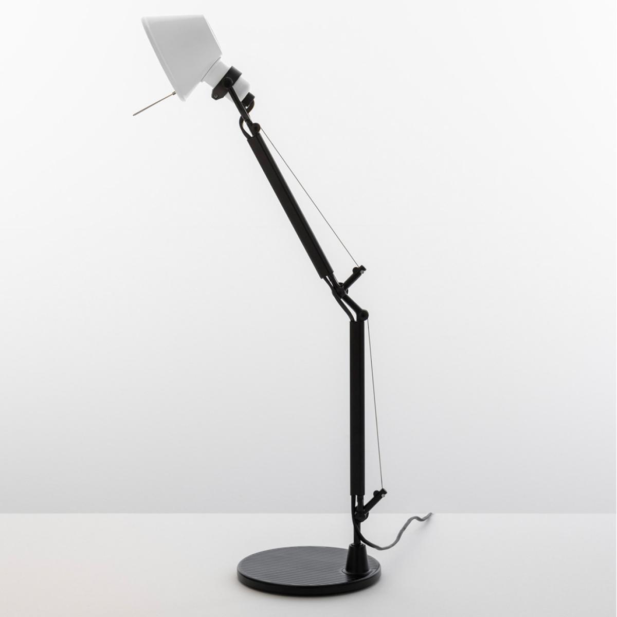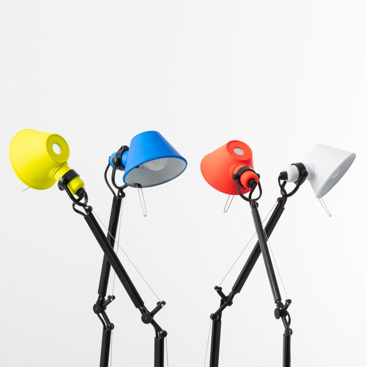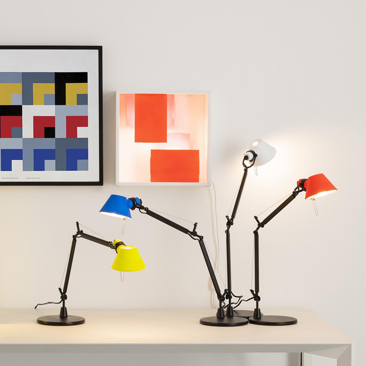 The understated charm of Artemide's Tolomeo Micro Bicolour Lamp by Michele De Lucchi and Giancarlo Fassina lies in its flexibility, allowing adjustable light emission in all directions. Constructed from aluminium and steel, its weighted base ensures stability and aids the ease of movement of its two articulated arms. The streamlined silhouette is topped with a small lampshade, making it a superb choice for desks, bedside tables and side tables where extra lighting is required. Founded by Ernesto Gismondi and Sergio Mazza in 1960, Artemide is renowned as one of the world's leading lighting manufacturers. In recognition of its immense success in the design industry, it holds the coveted Compasso d'Oro award, the European Design Prize and numerous Best of the Best Red Dot awards to its name. Requires: 1x E14 LED 6W bulb (included).