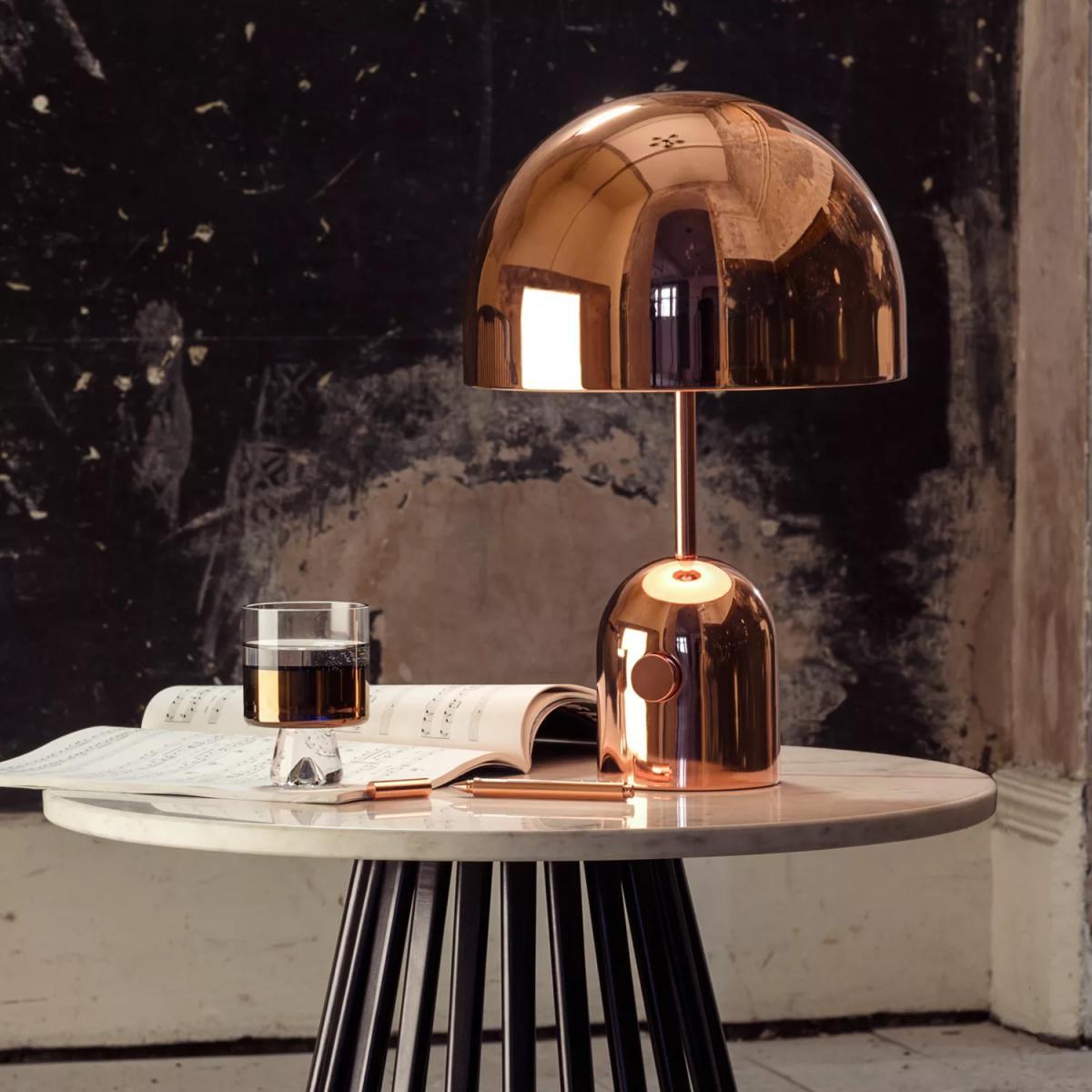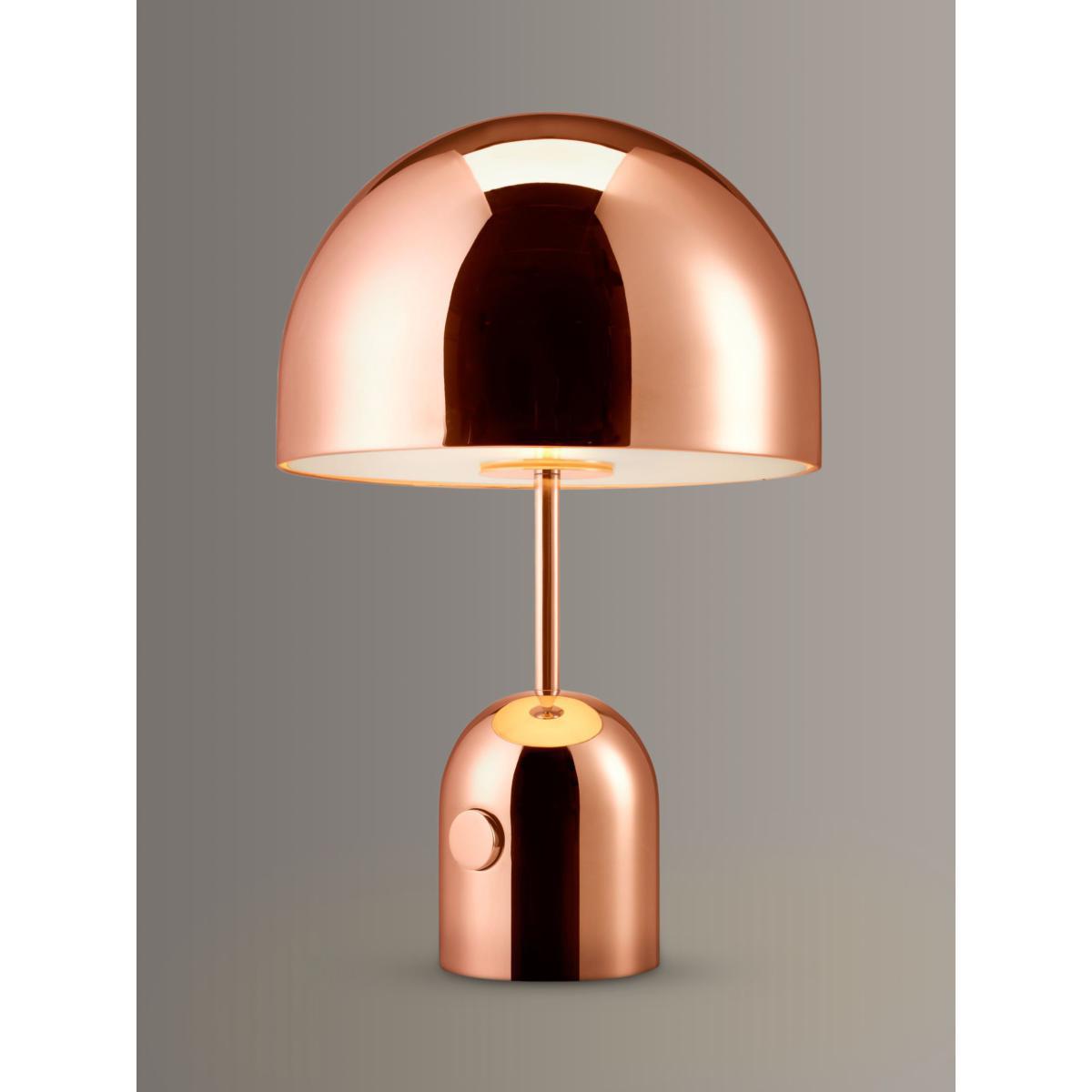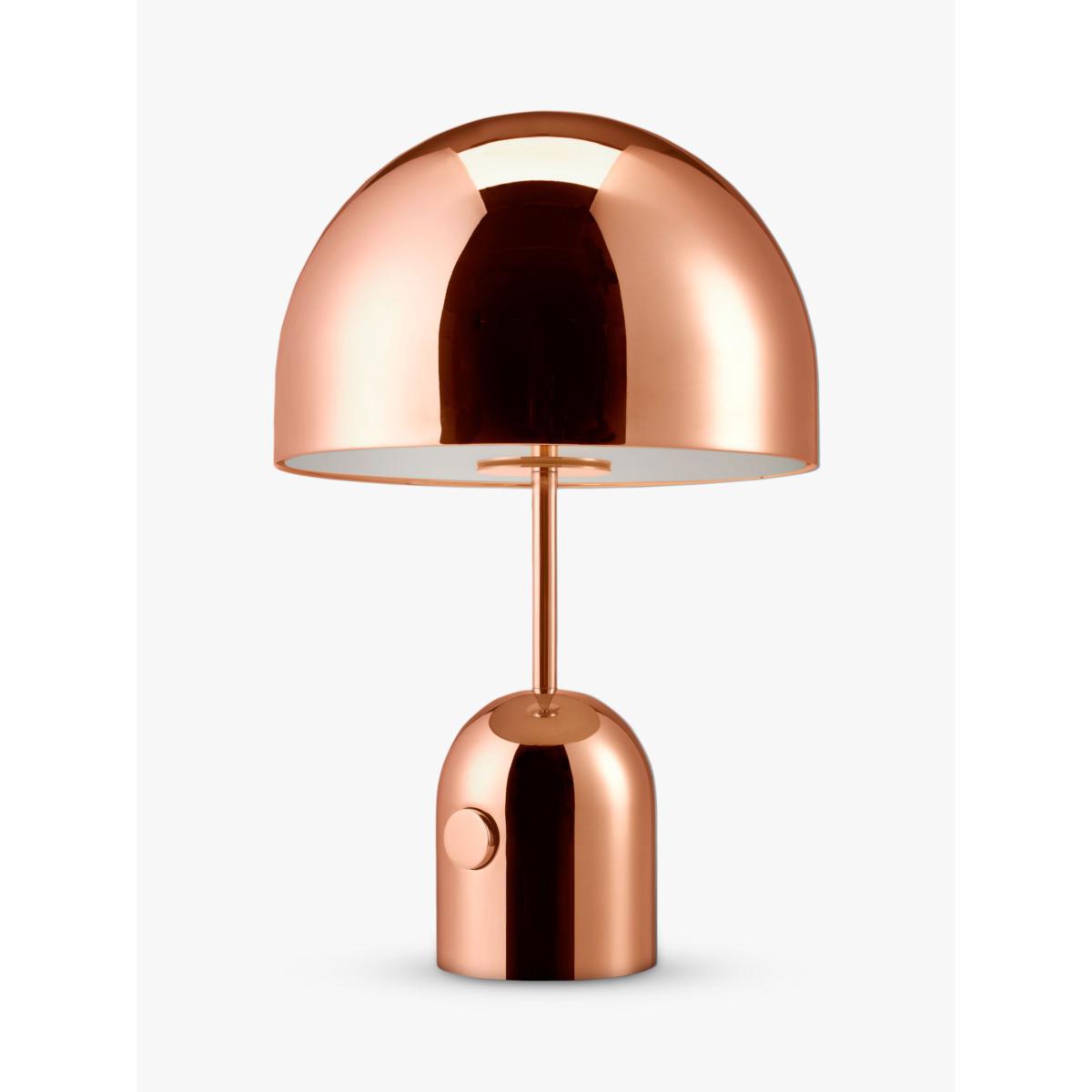 Made from hyper-polished pressed steel, the Bell table lamp from Tom Dixon offers a striking style for your tabletop. Its shiny finish has a reflective, mirrored effect, while its weighted base ensures stability. Designed with a dome-shaped shade that's suspended by a narrow stem, it features a concealed diffuser to offer a soft, ambient lighting style that can be controlled via the integrated dimmer switch on the base.