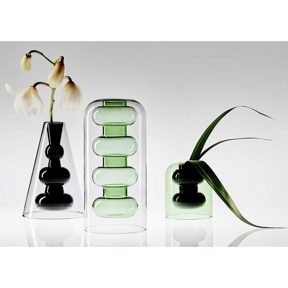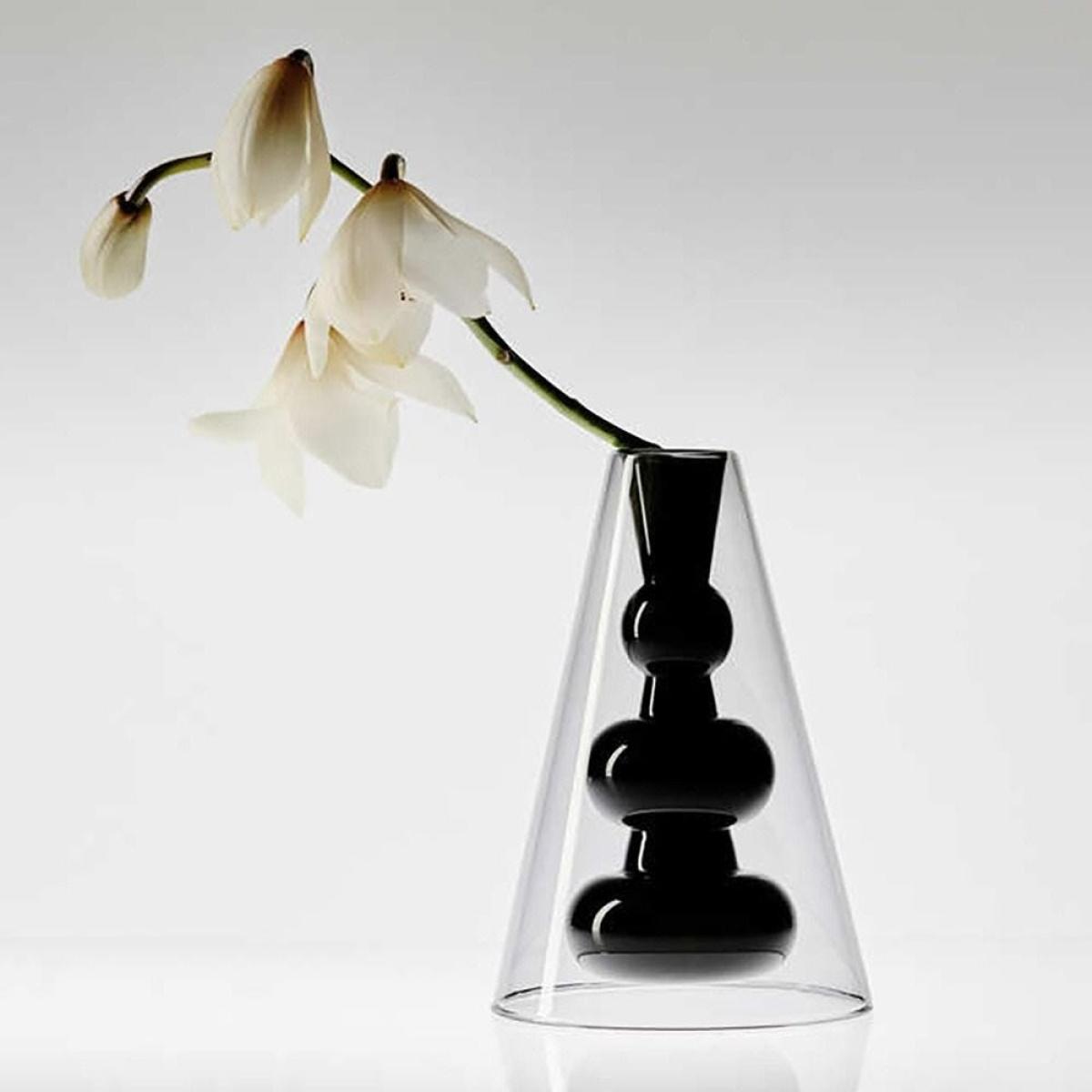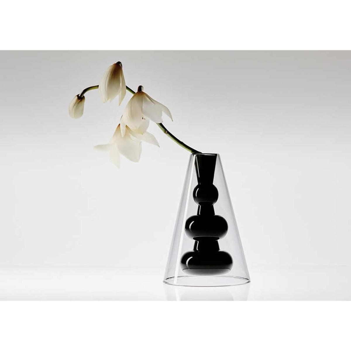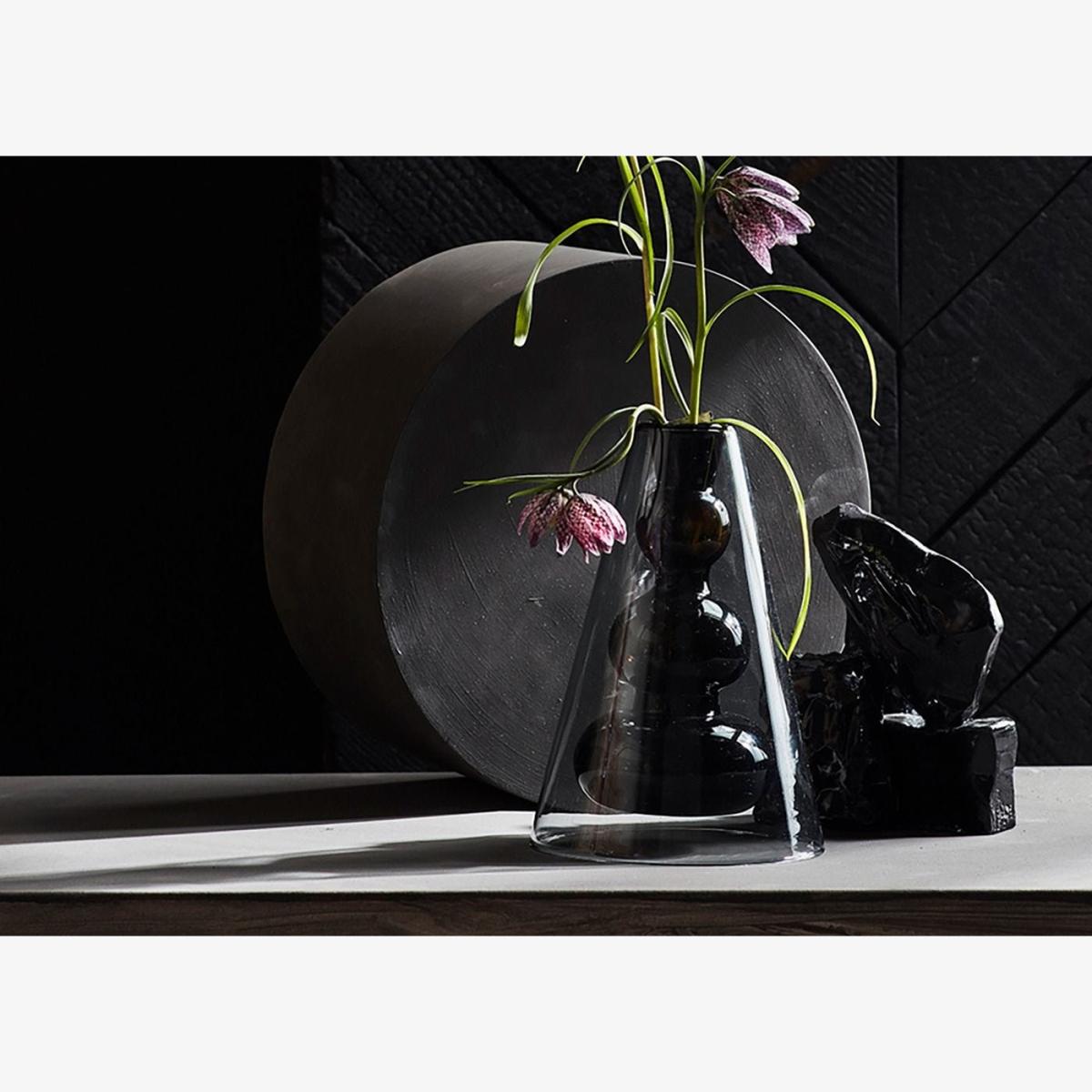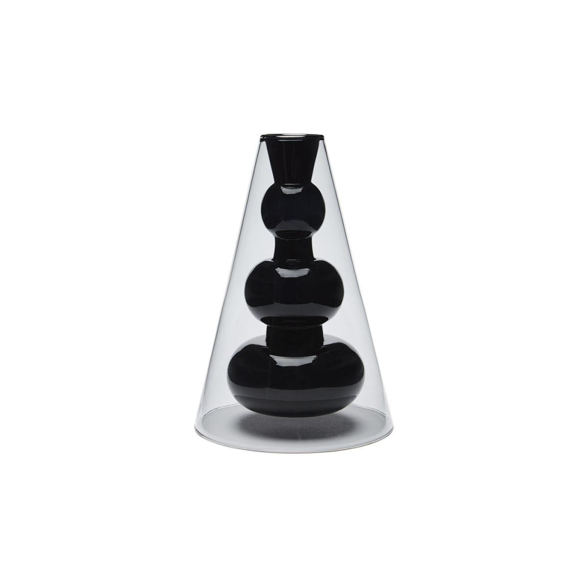 Delicately crafted by hand, Tom Dixon’s Bump collection is mouthblown into a graphite mould to produce a distinctive design. Taking inspiration from laboratory apparatus, this cone-shaped vase is made from thick borosilicate, the heat-resistant glass found in science laboratories and punctured with a bubble design at the centre. Ideal for floral arrangements, this elegant vase will make an eye-catching statement.