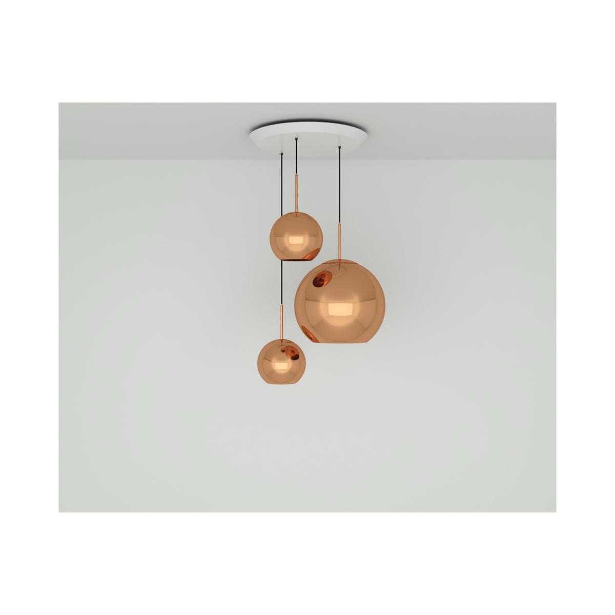 The best things come in threes. Tom Dixon's Copper range is a playful collection of oversized, blow moulded, reflective globes that combine a timeless elegance with a luminous modernity. Available as a trio hanging pendant light, enjoy the sophisticated reflections of the arrangement and delight in its radiant glow.